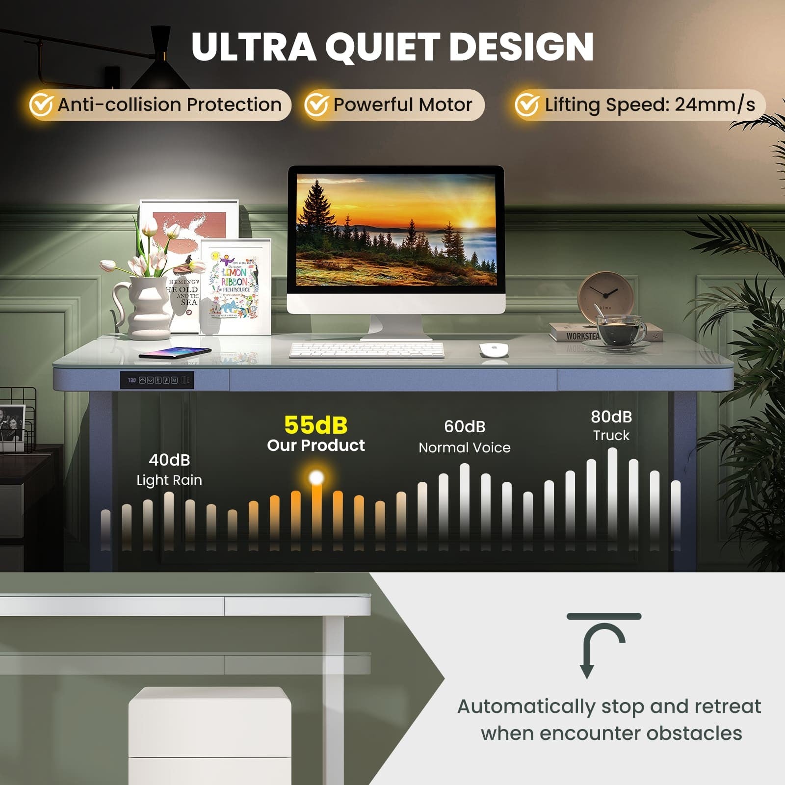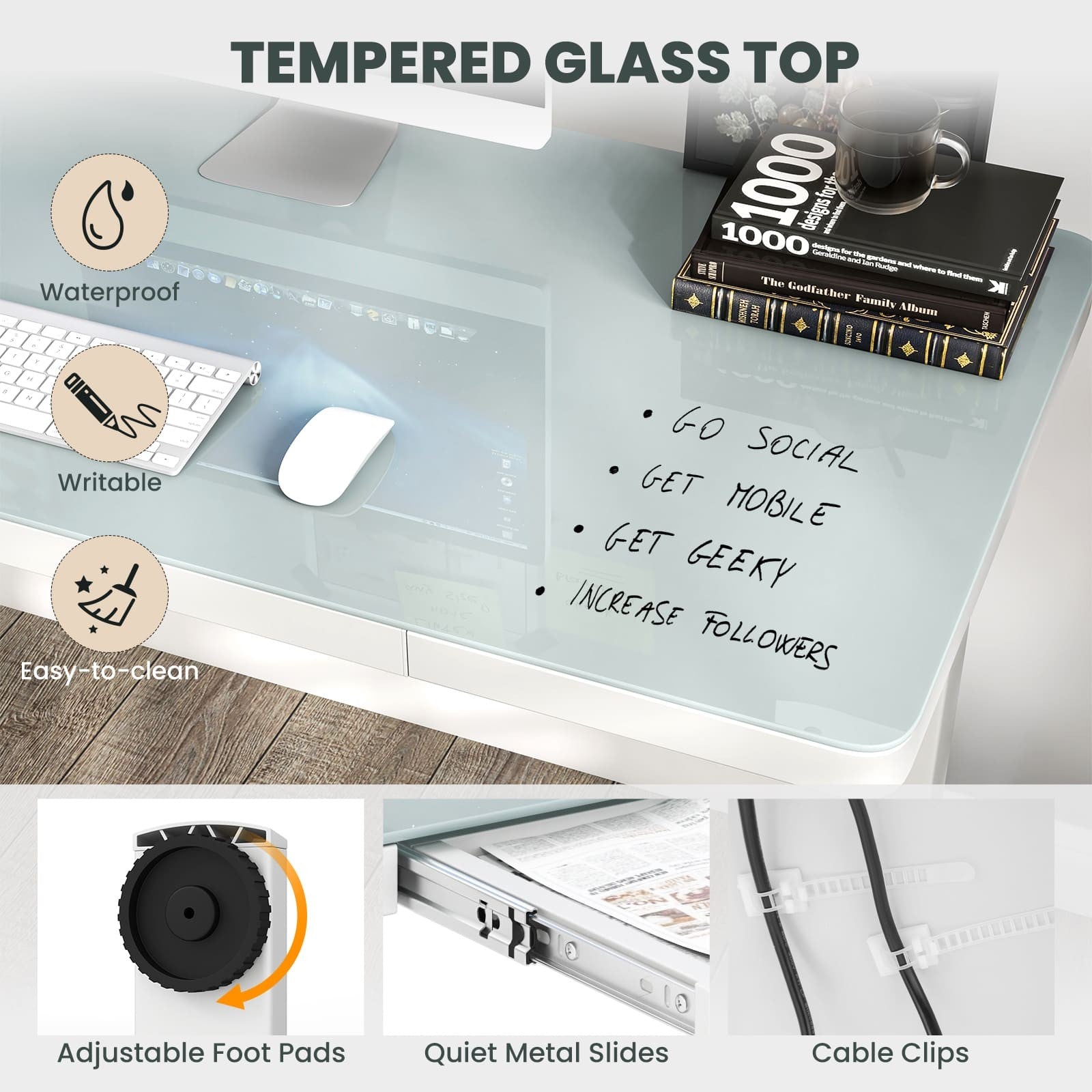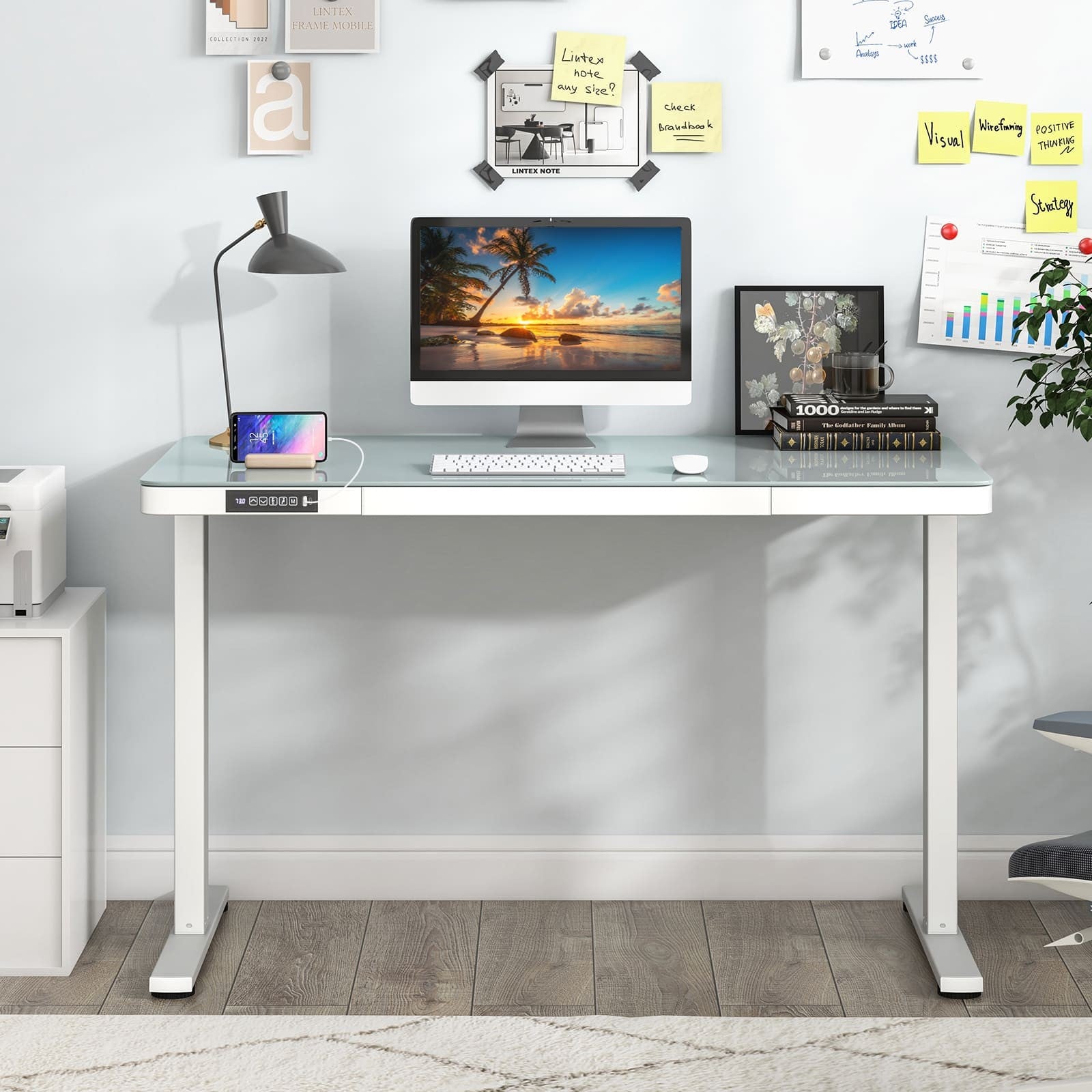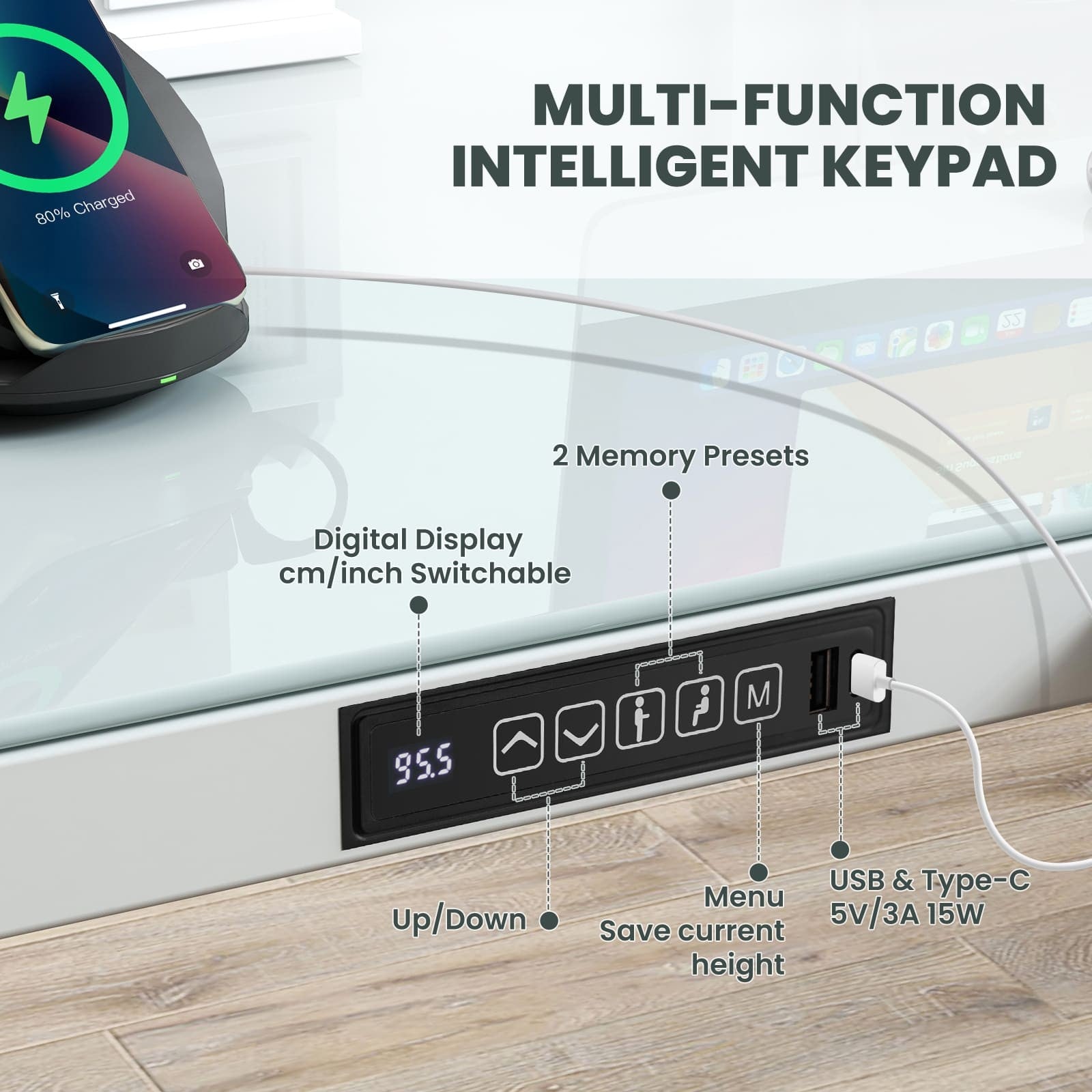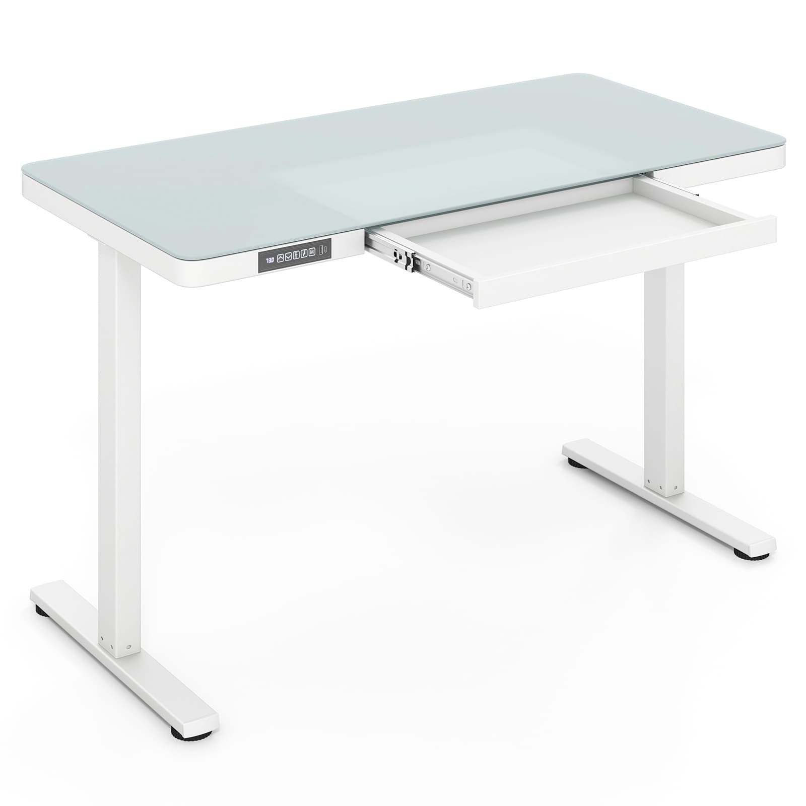 120 x 60 CM Whole-Piece Glass Standing Desk w/ USB Type-C Outlets White