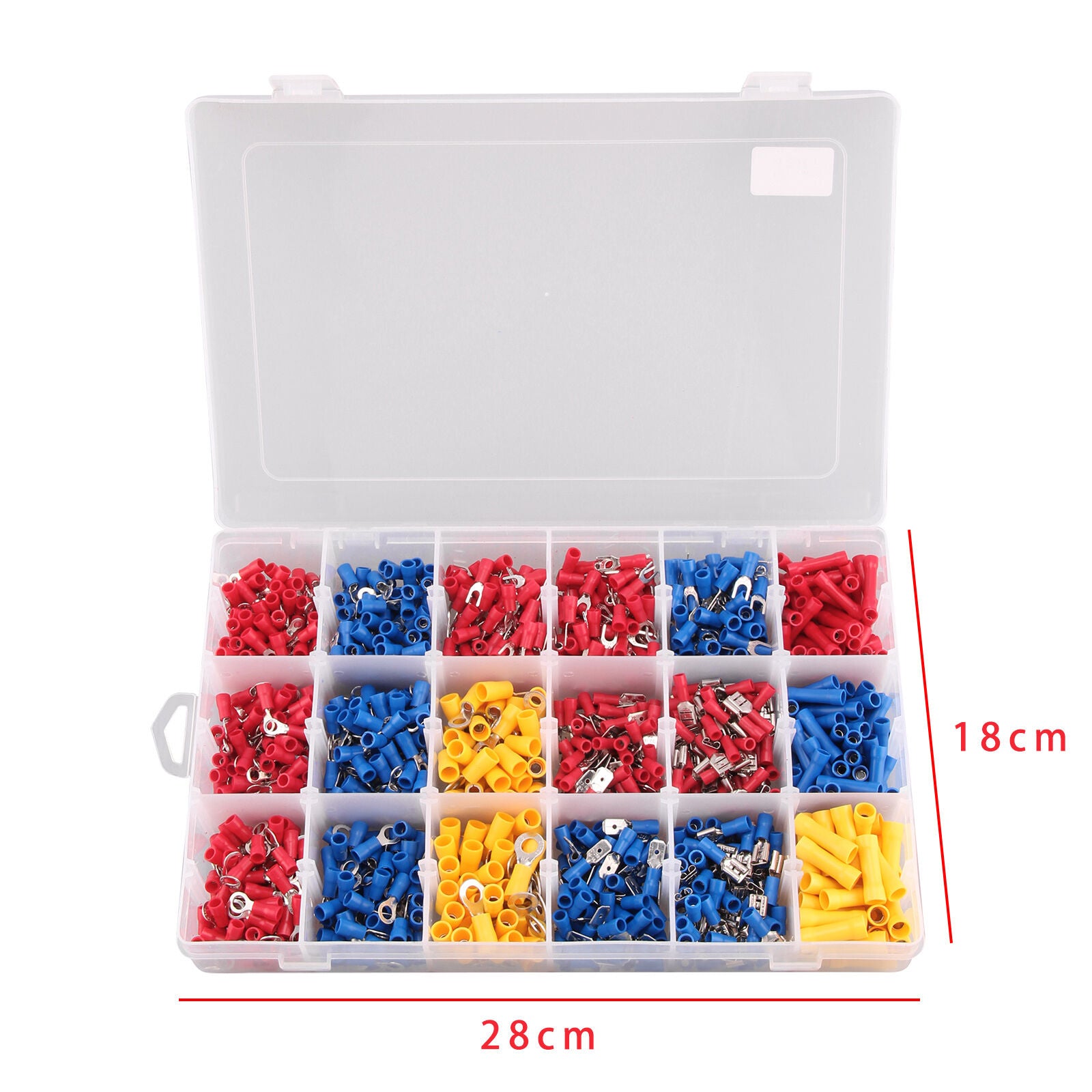 1200pc Insulated Assorted Electrical Connectors Terminals Crimp Wire Ring Spade
