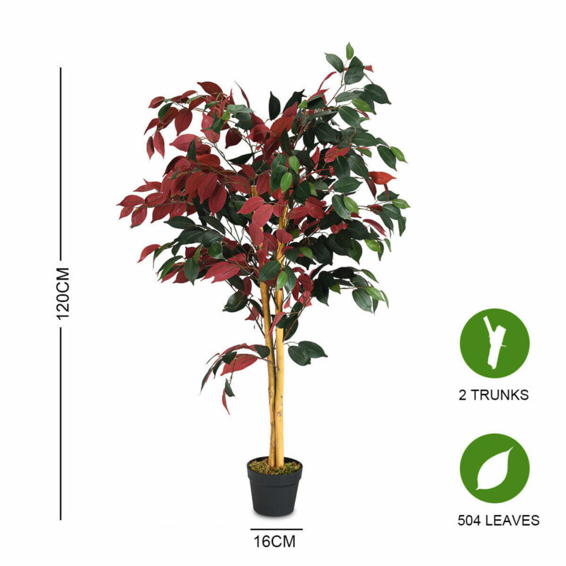 120CM Artificial Ficus Tree Realistic Fake Decorative Plant with Plastic Pot