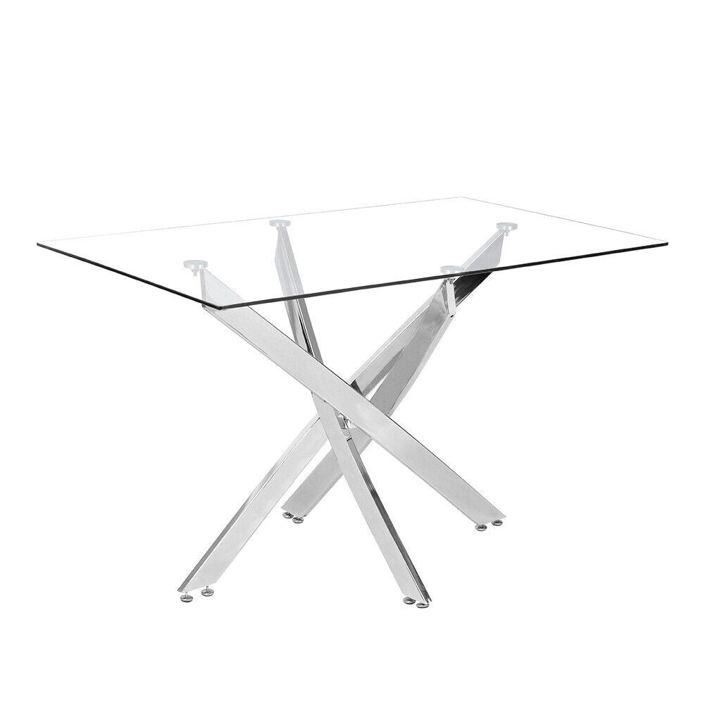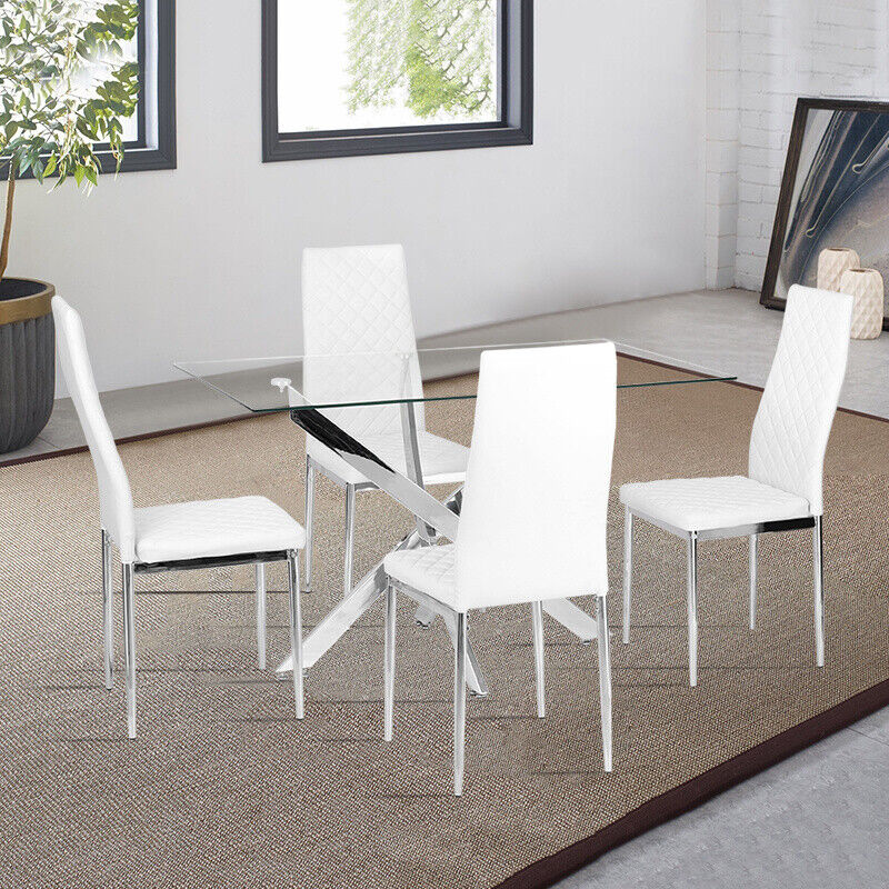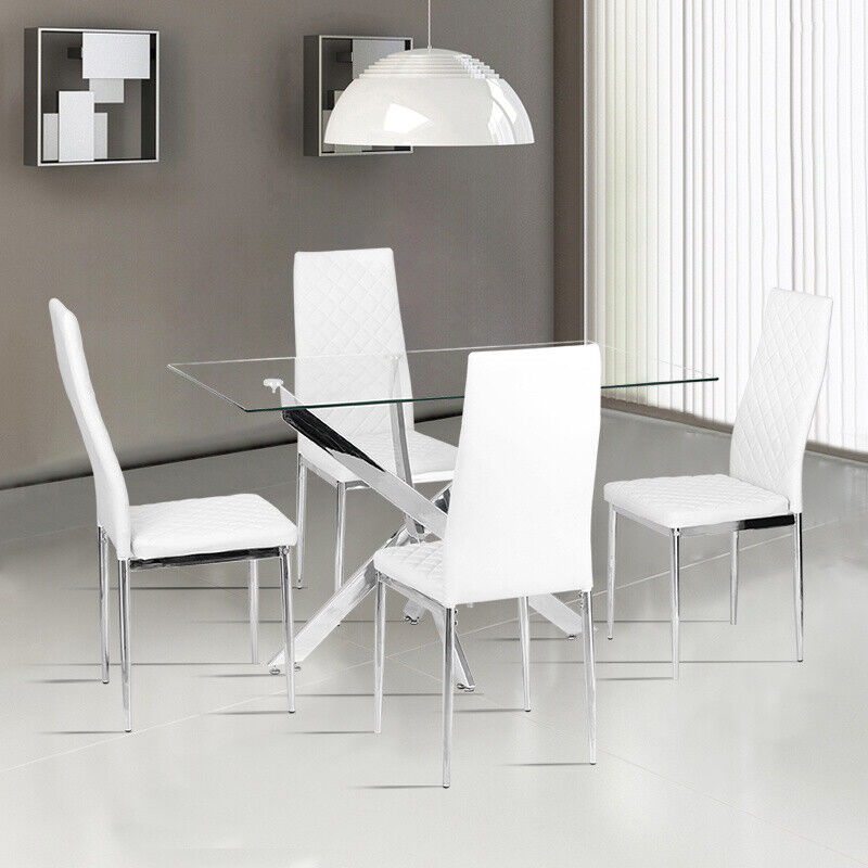 120cm Clear Glass Dining Table 2 4 Faux Leather Padded Chairs Kitchen Furniture