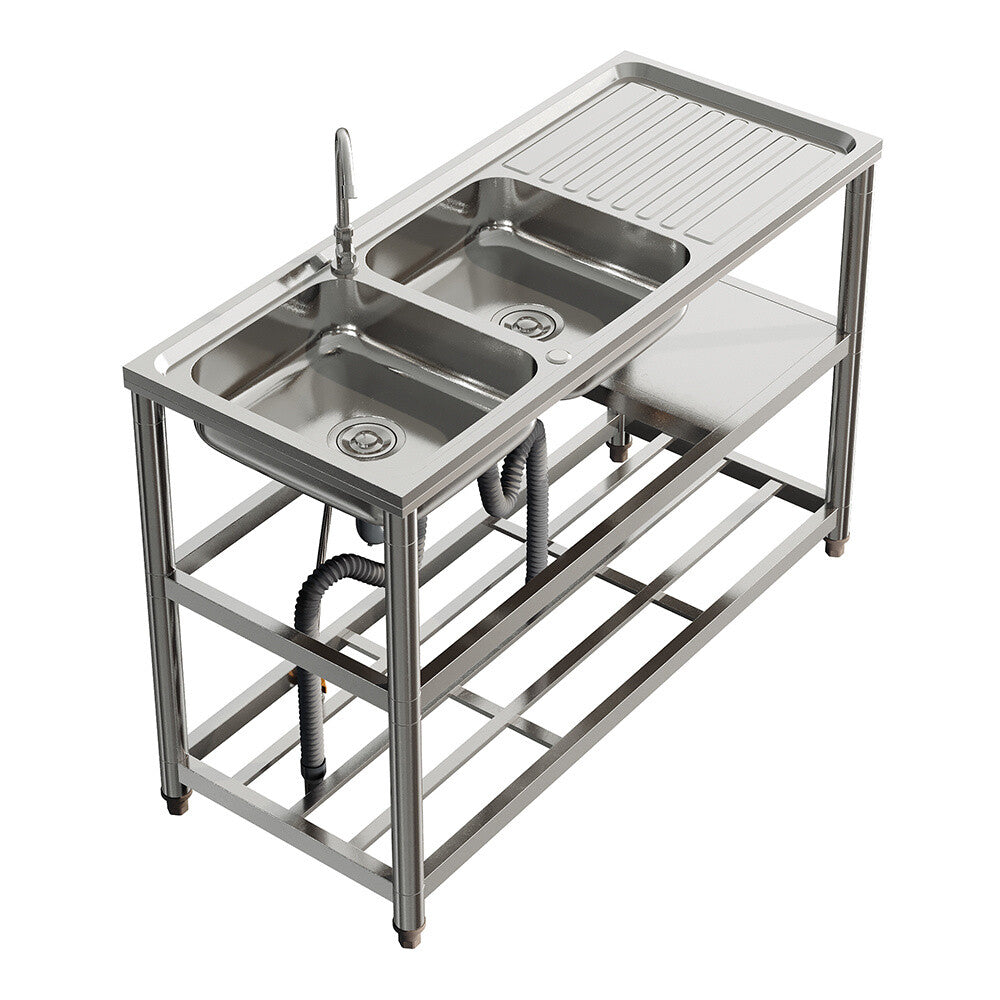 Features Multi-Station, Side Splash, Soap Dispenser, With Drainer Waste, With 2 Tiers Shelf, with tap, Revisible Platform