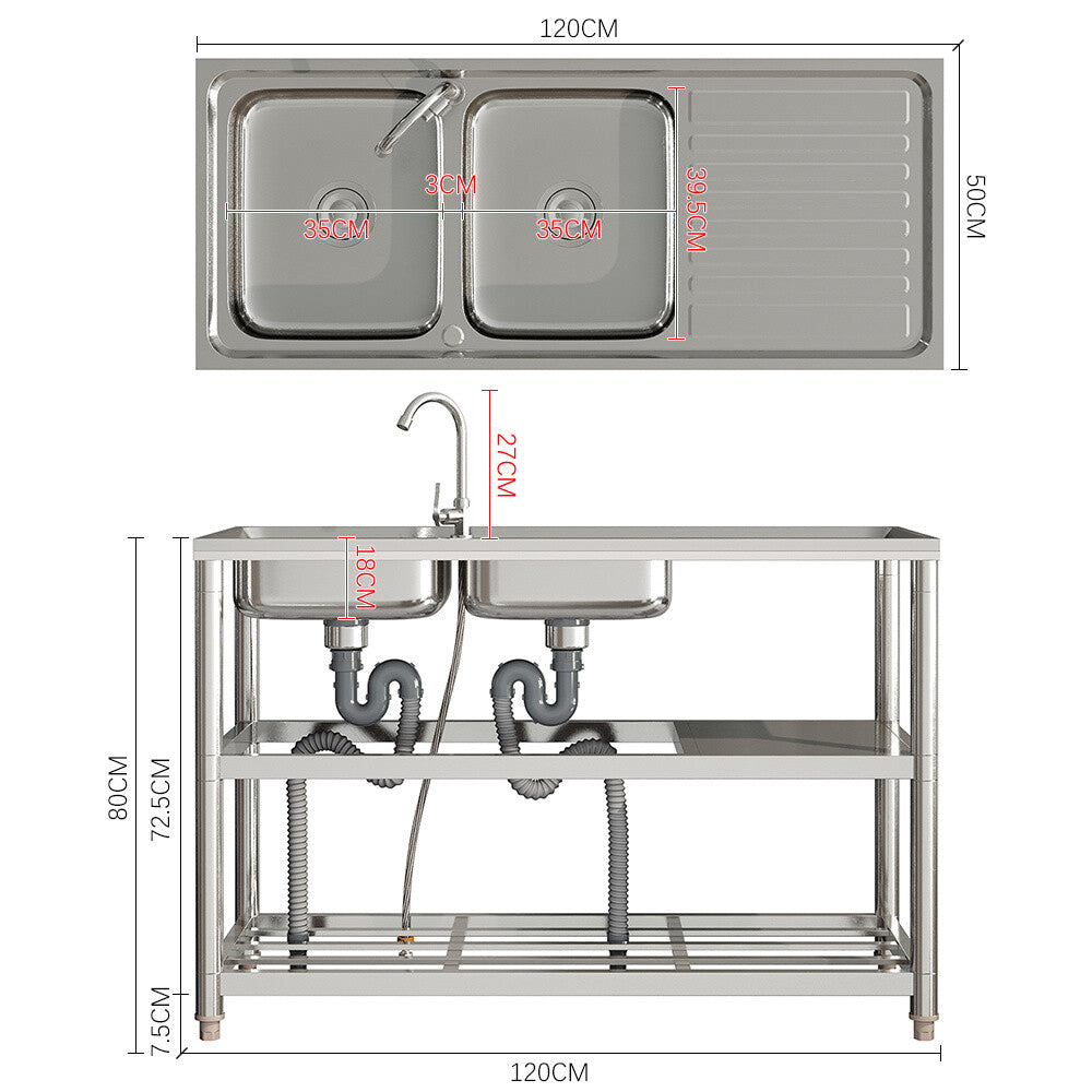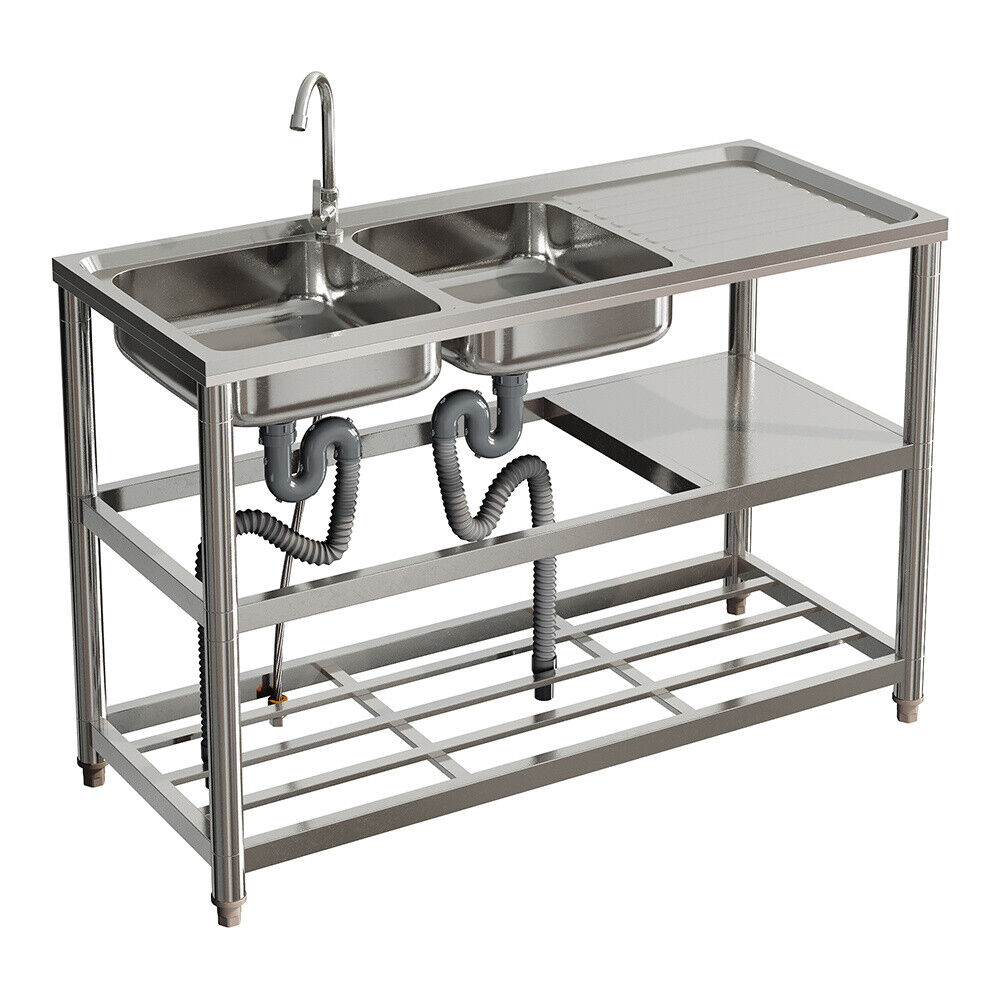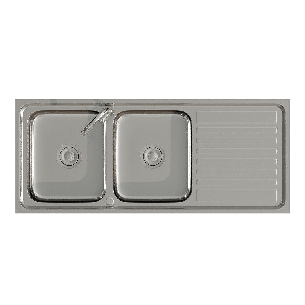 120cm Commercial Sink Kitchen Stainless Steel 2.0 Bowl Catering Drainer Unit+Tap
