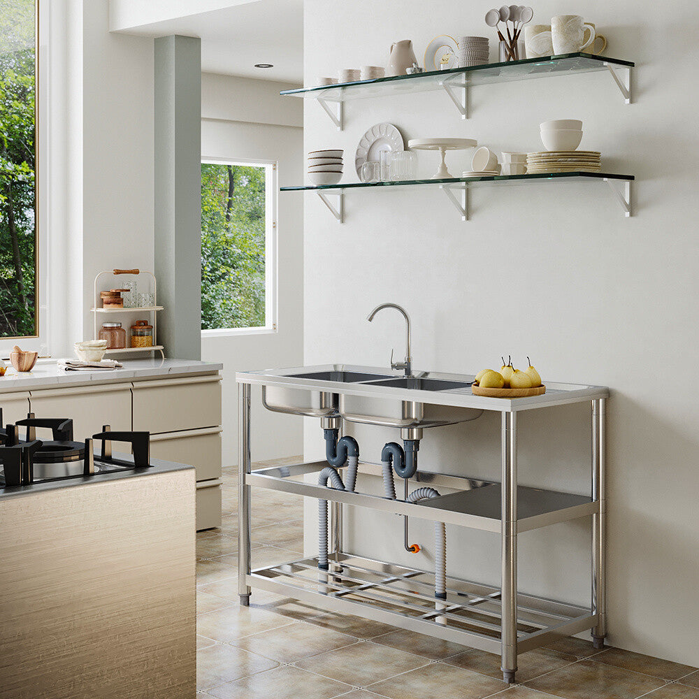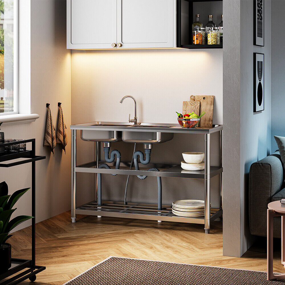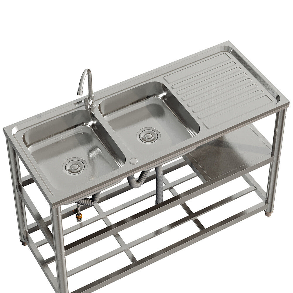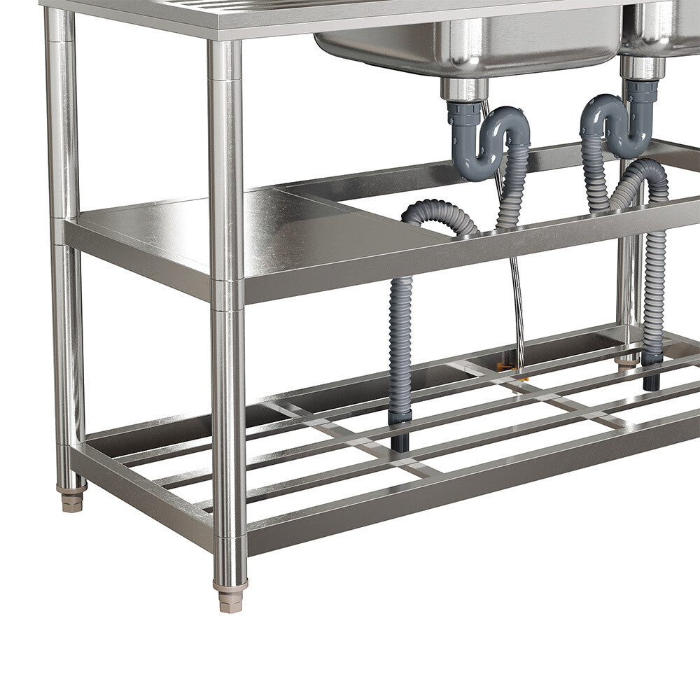 120cm Commercial Sink Kitchen Stainless Steel 2.0 Bowl Catering Drainer Unit+Tap