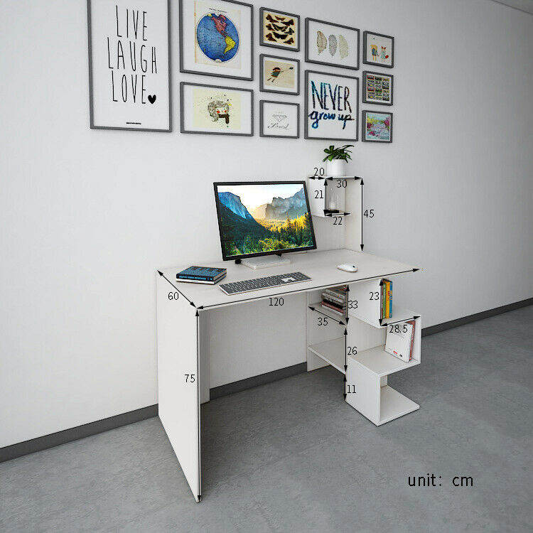 120cm Computer Desk PC Study Table Home Office Workstation W/Bookshelf Shelves