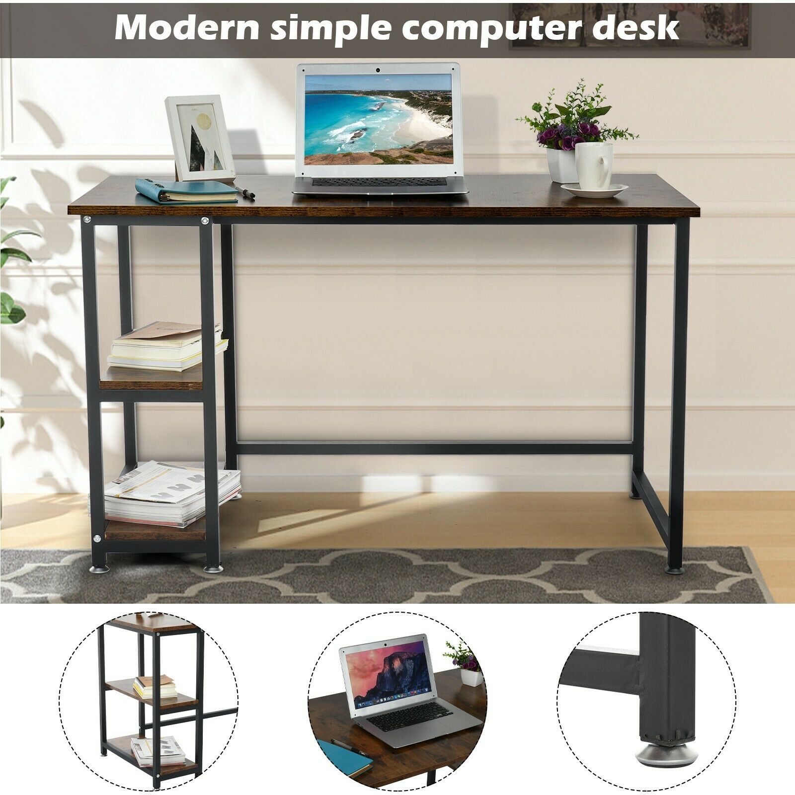 120CM Computer Desk PC Table Laptop Corner Bookshelf Writing Office Unit Brown