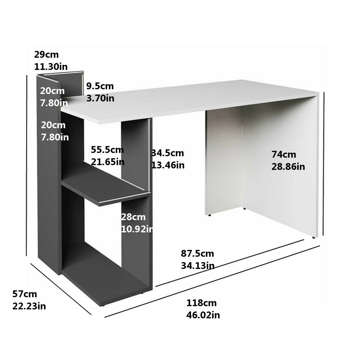 120cm Computer Desk Writing Study Table Office With Shelves Corner Study Home UK