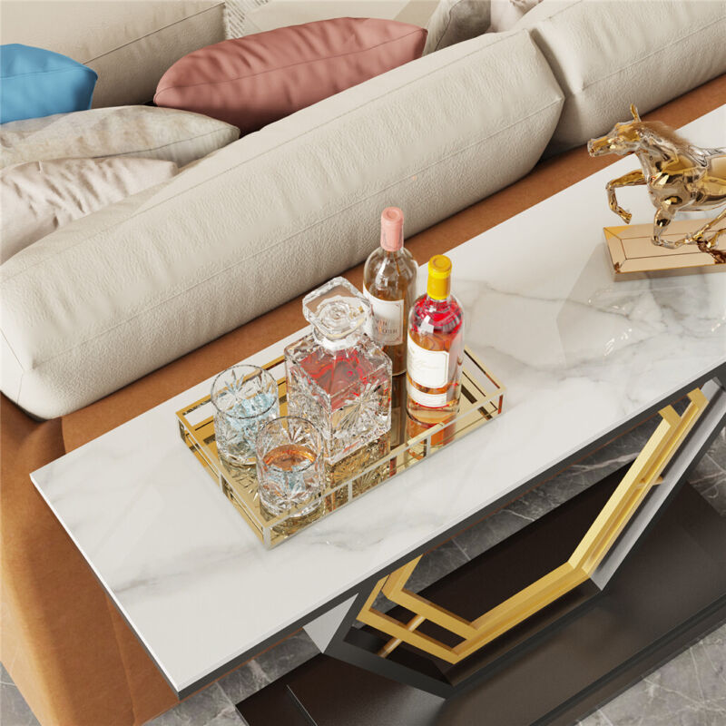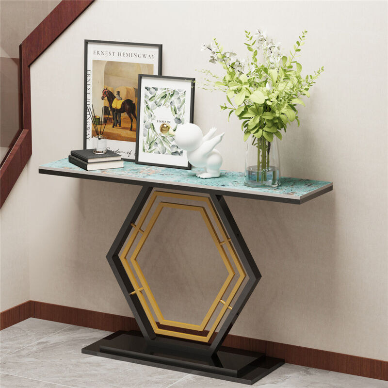 120cm Console Table Hall Marble Tabletop Geometric Base Accent Desk Storage