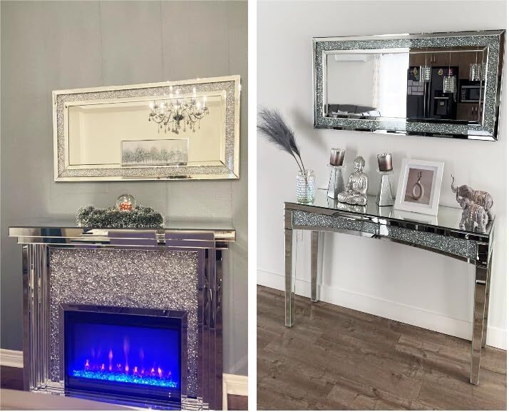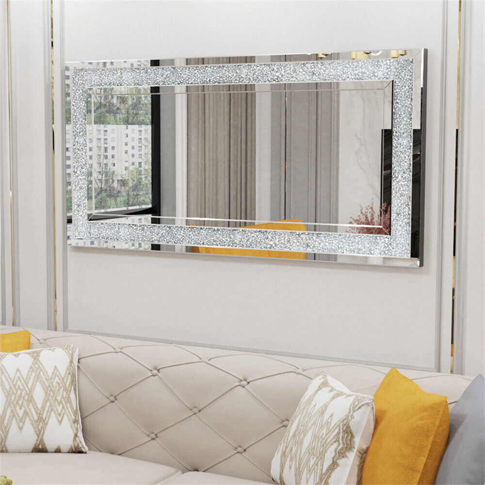 120cm Extra Large Diamond Crushed Mirror Full Body Glitter Jewelled Wall Mirror