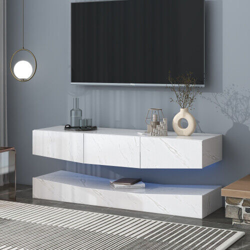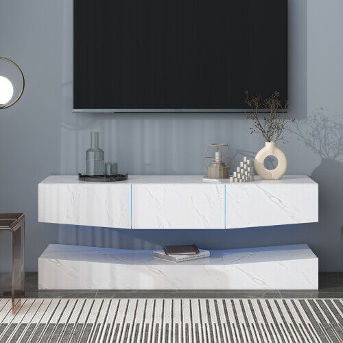 120cm Floating TV Wall Unit Cabinet TV Stand High Gloss With RGB Led Lights BT