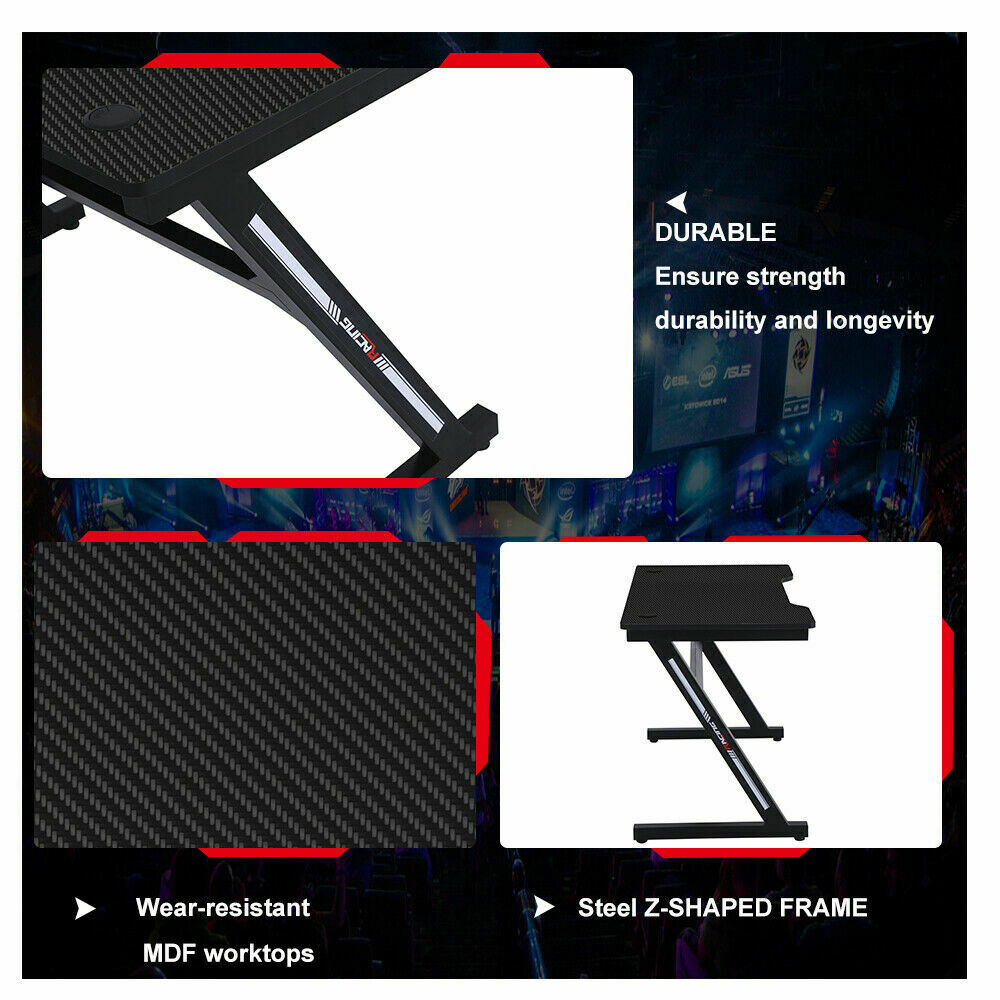 120CM Gaming Desk Computer Table PC Laptop Racing Gamer Home Office Z-Shaped