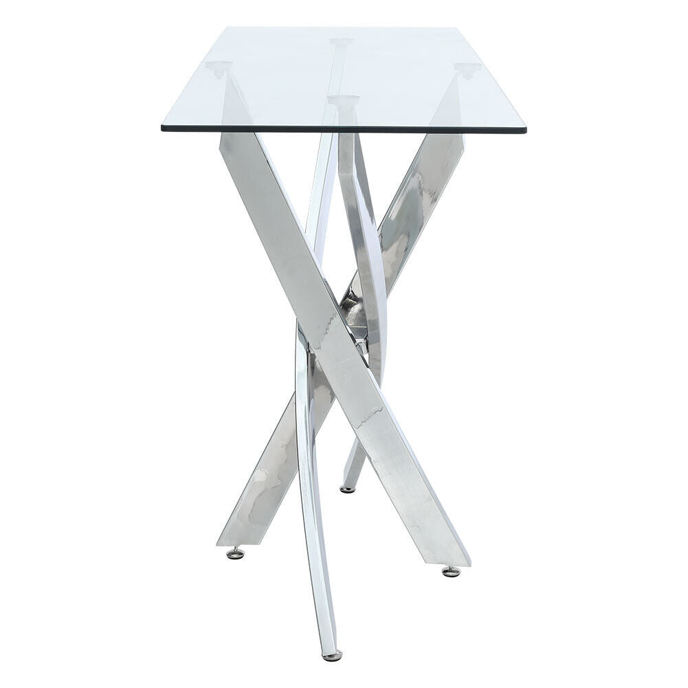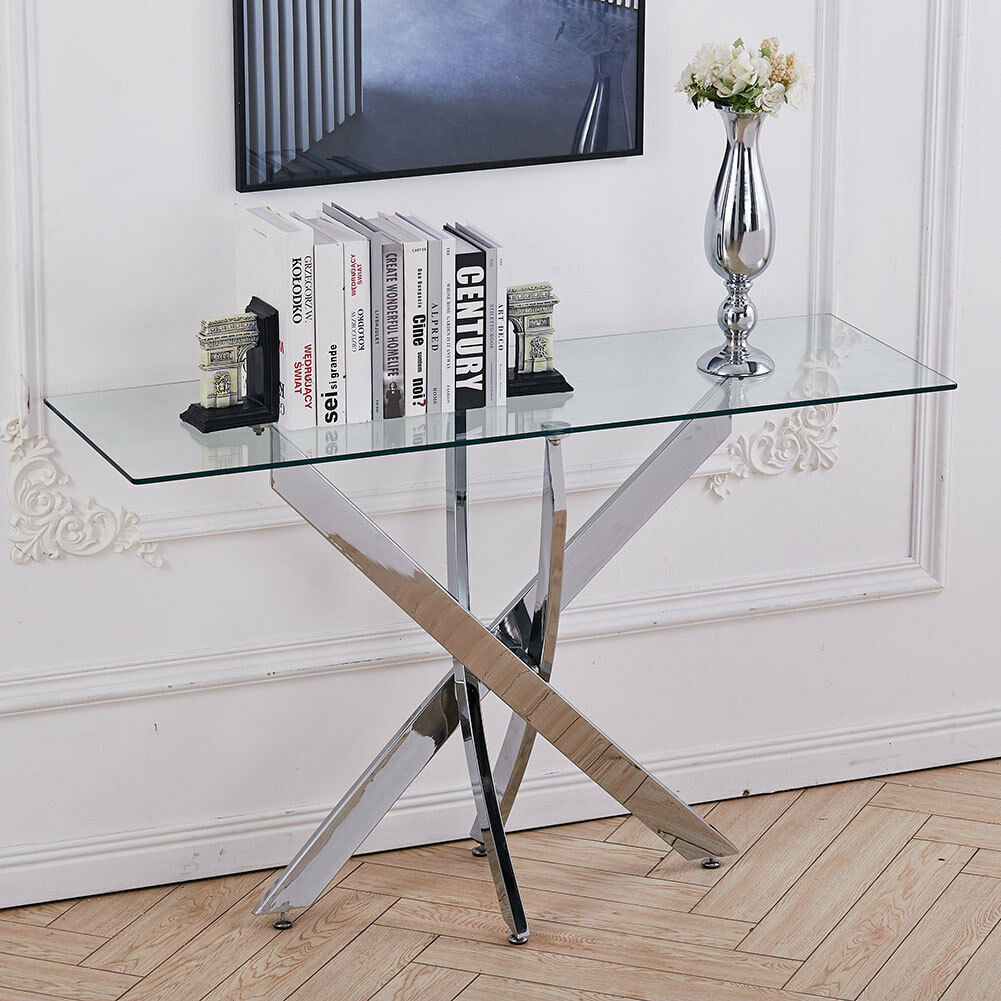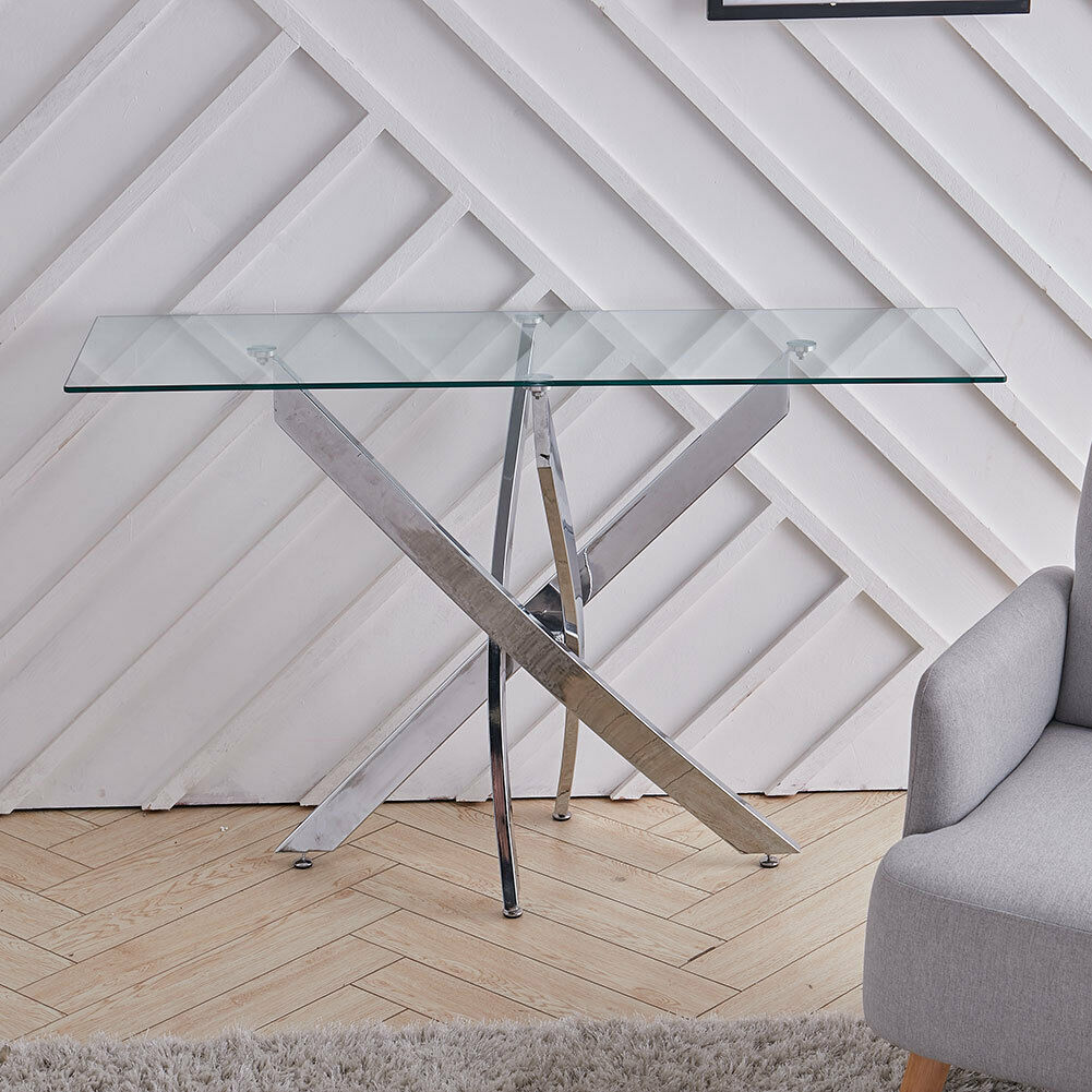 120cm Glass Console Table with Clear Tempered Glass and Chrome Cross Legs UK