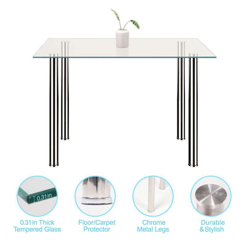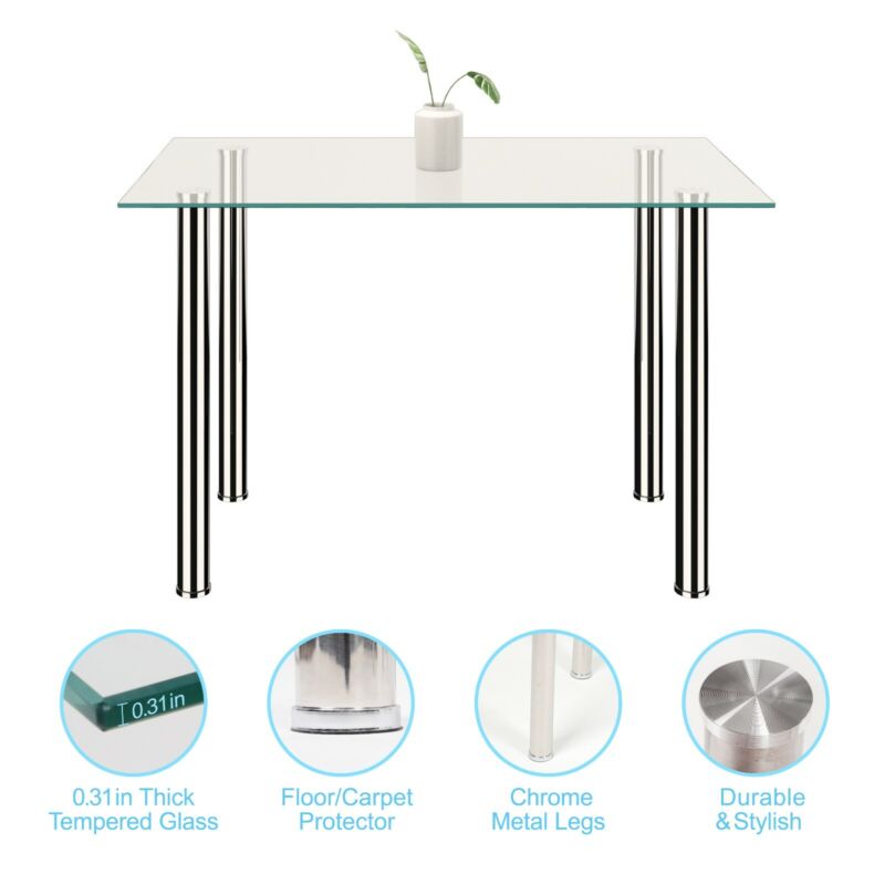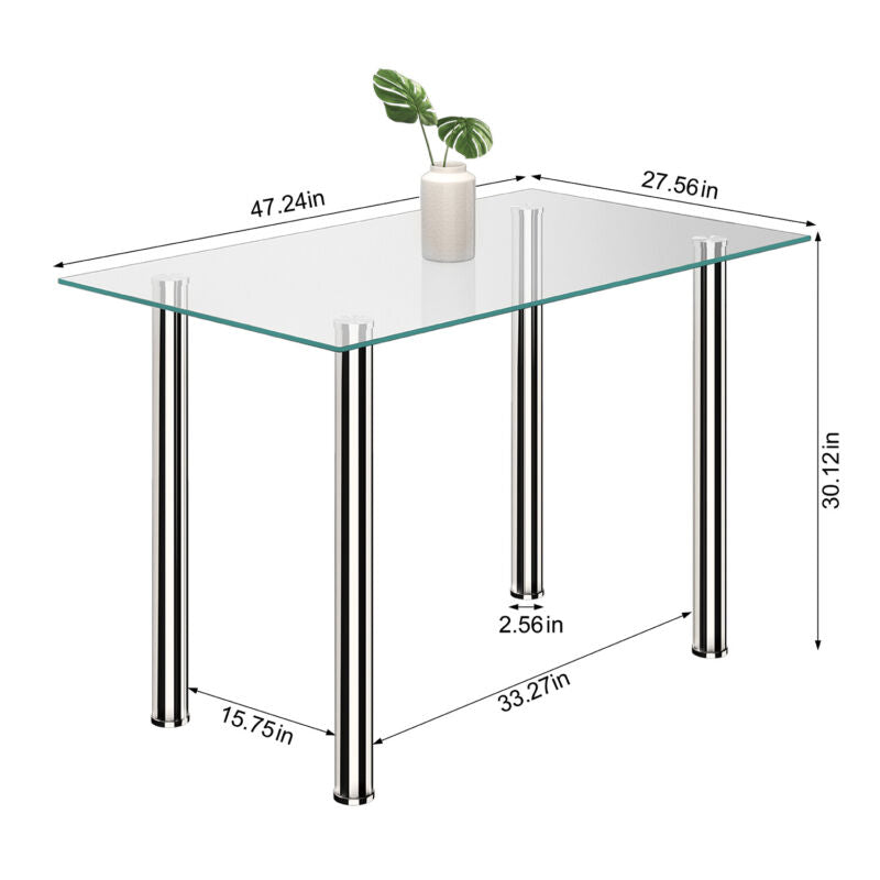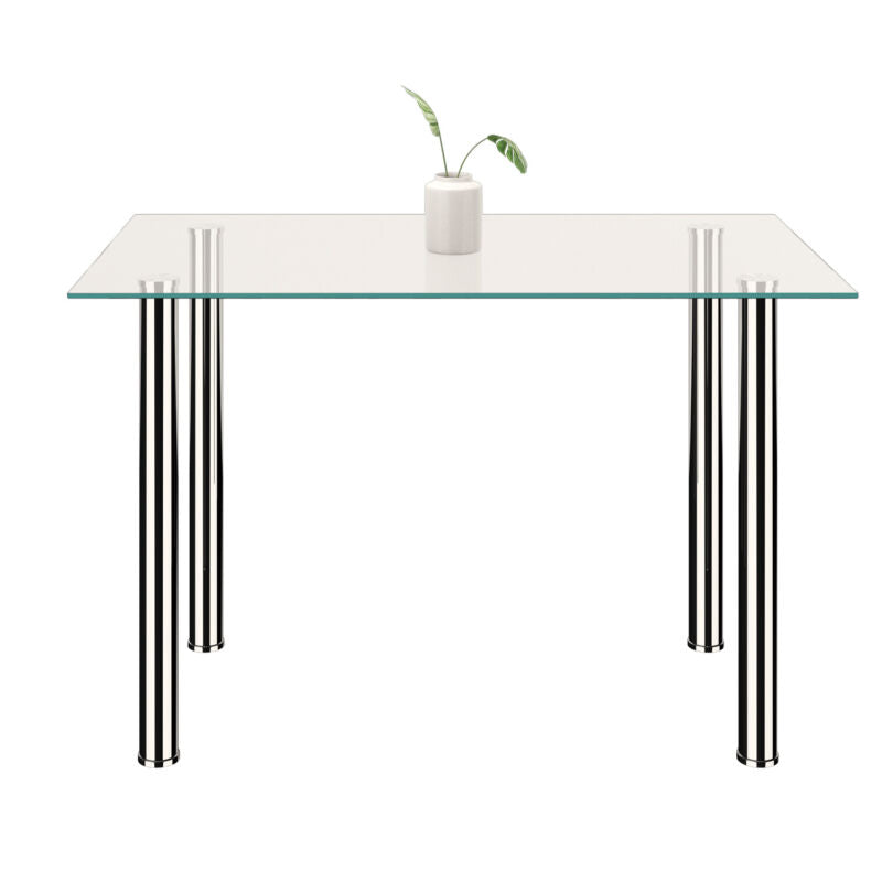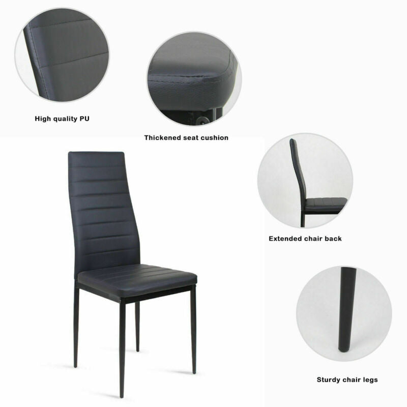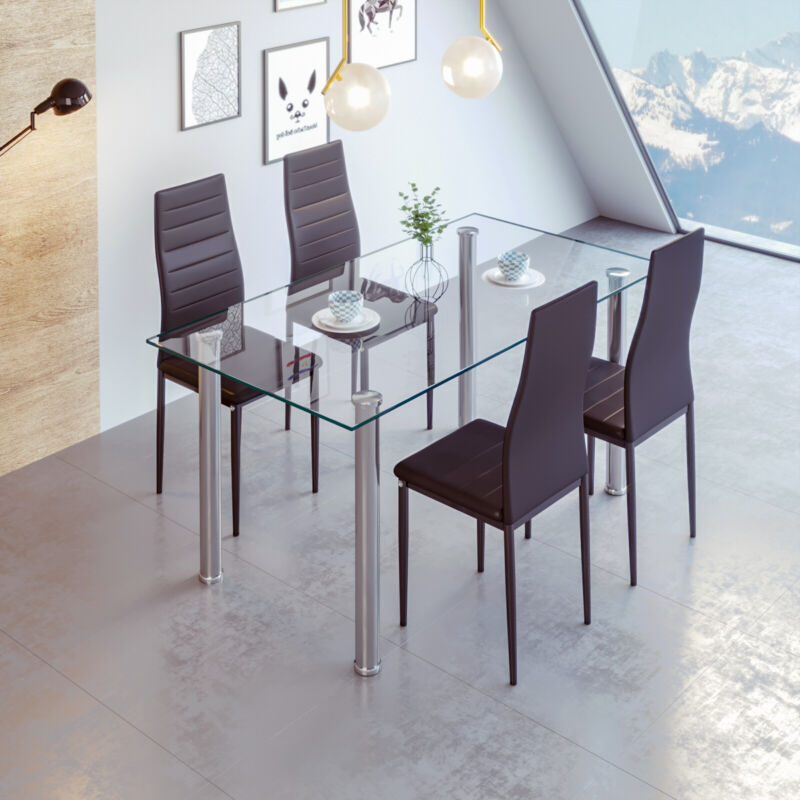 120cm Glass Dining Table 4 Chairs Faux Leather Kitchen Home Furniture Restaurant