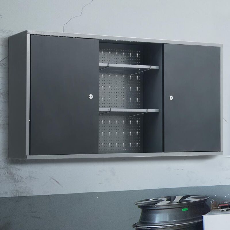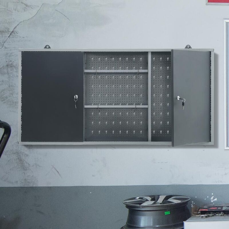 120cm Lockable Wall Mount Hanging Tool Box Garage Storage Cupboard Metal Cabinet