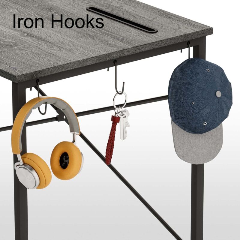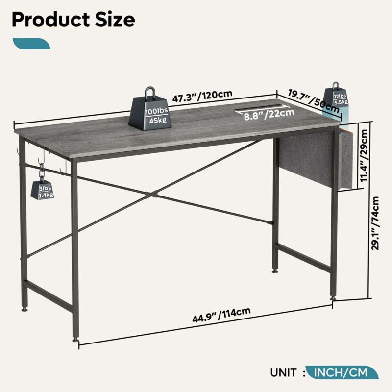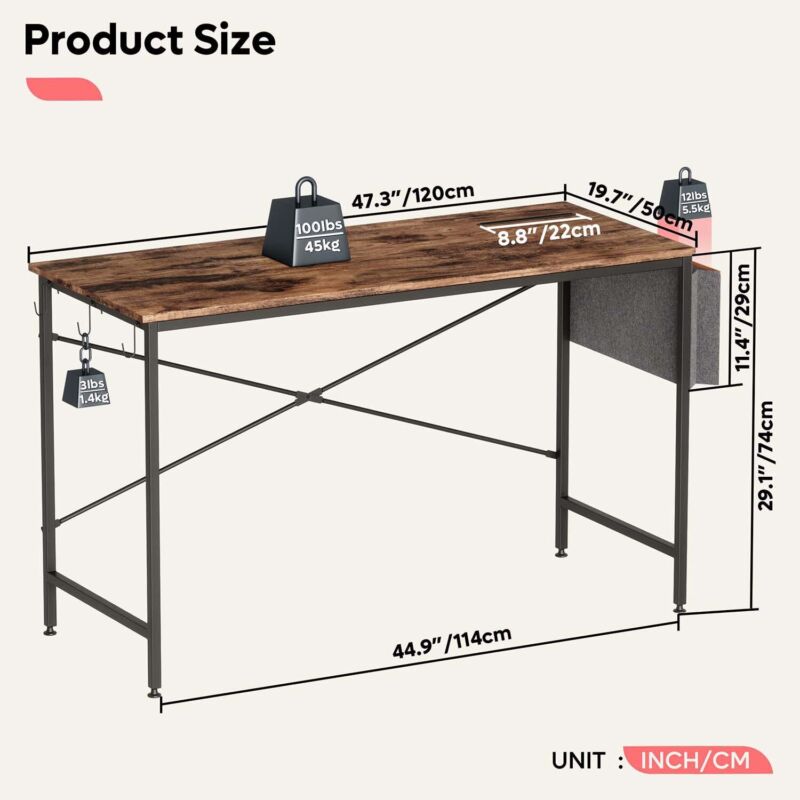 120cm Long Desk Industrial Computer Table w/ Headphone Hook Pocket for Writing