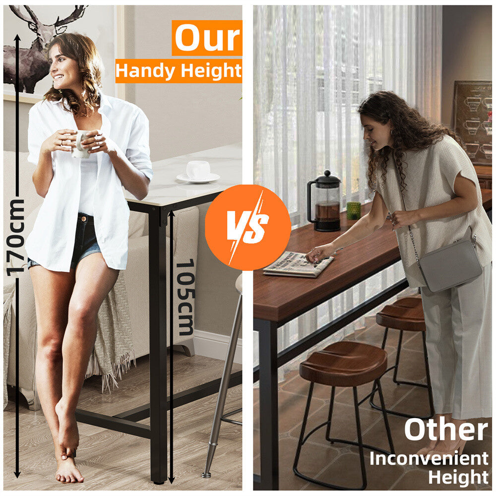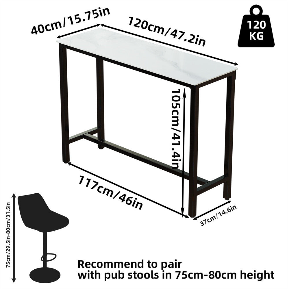 120cm Long Marble Bar Table Counter Height Pub Bar Cafe Breakfast Dining Table