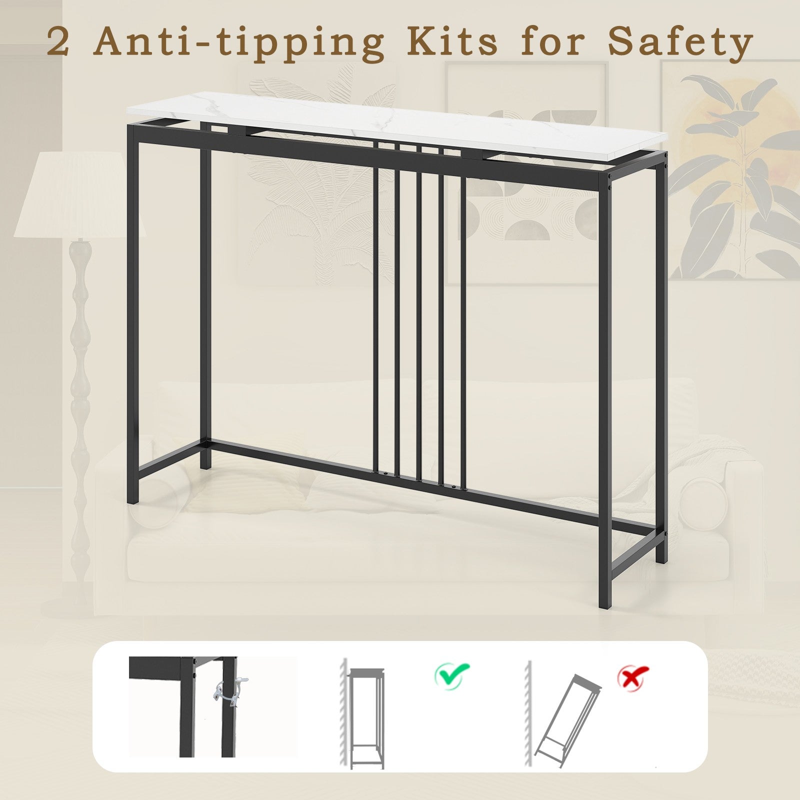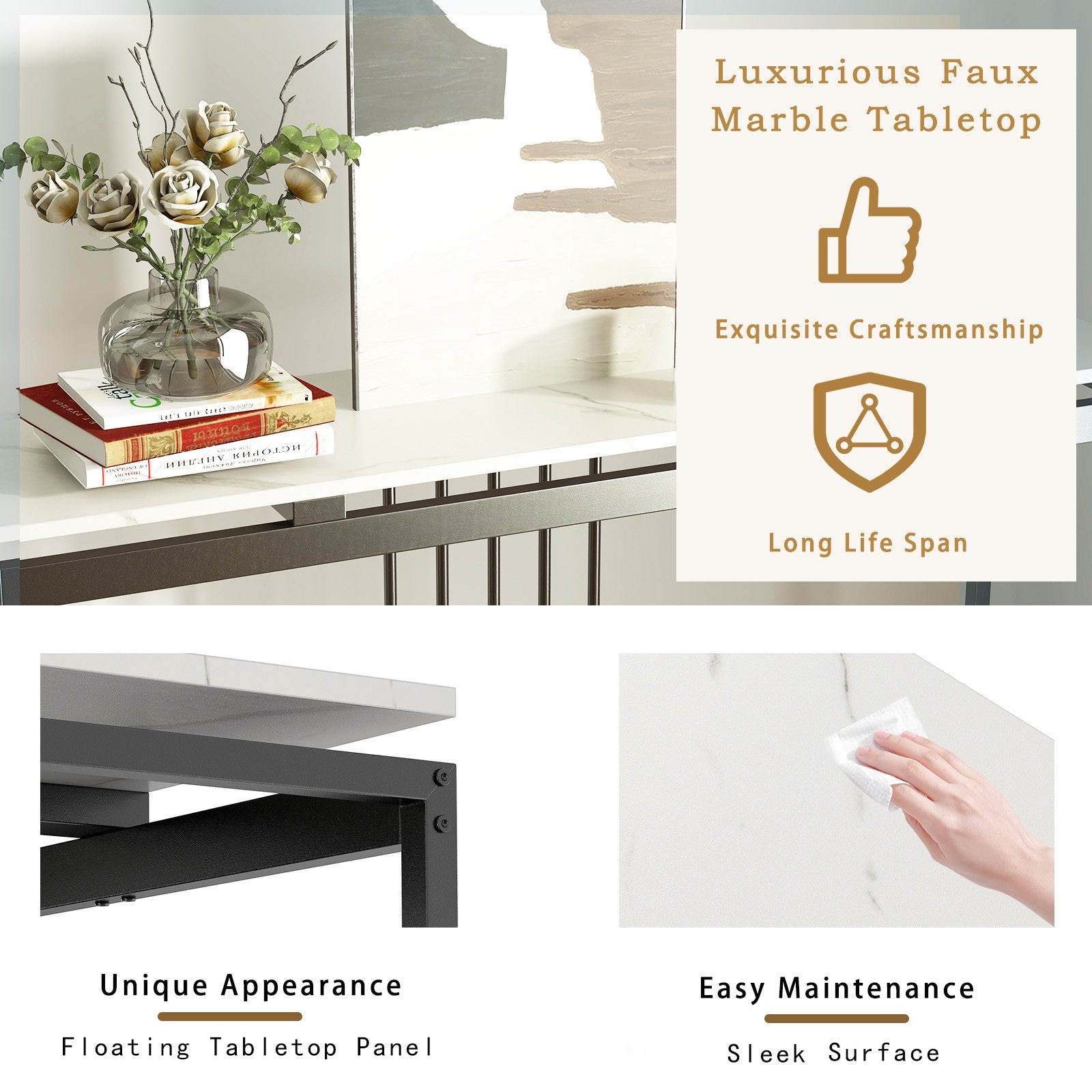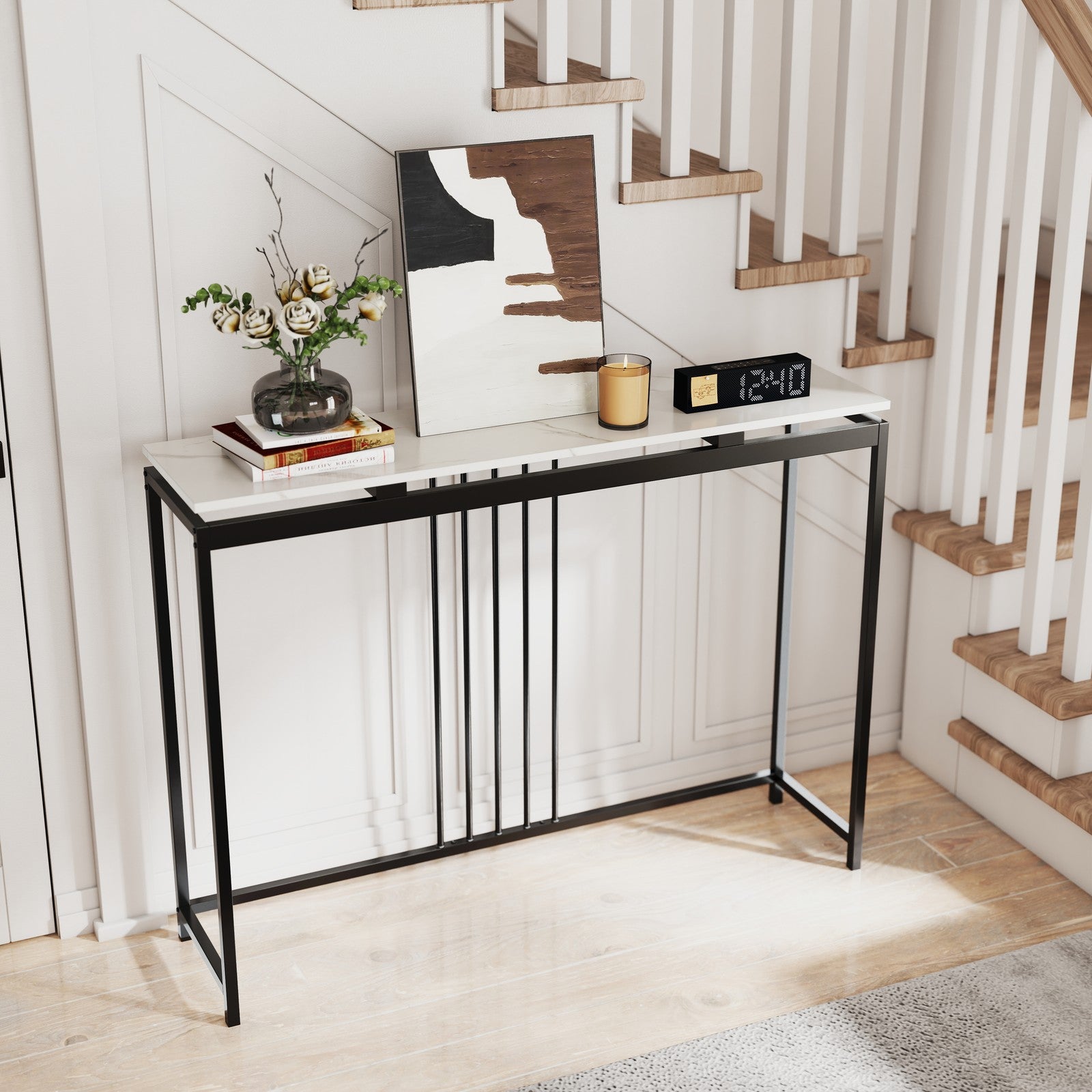 120cm Narrow Entryway Table with Faux Marble Tabletop-White