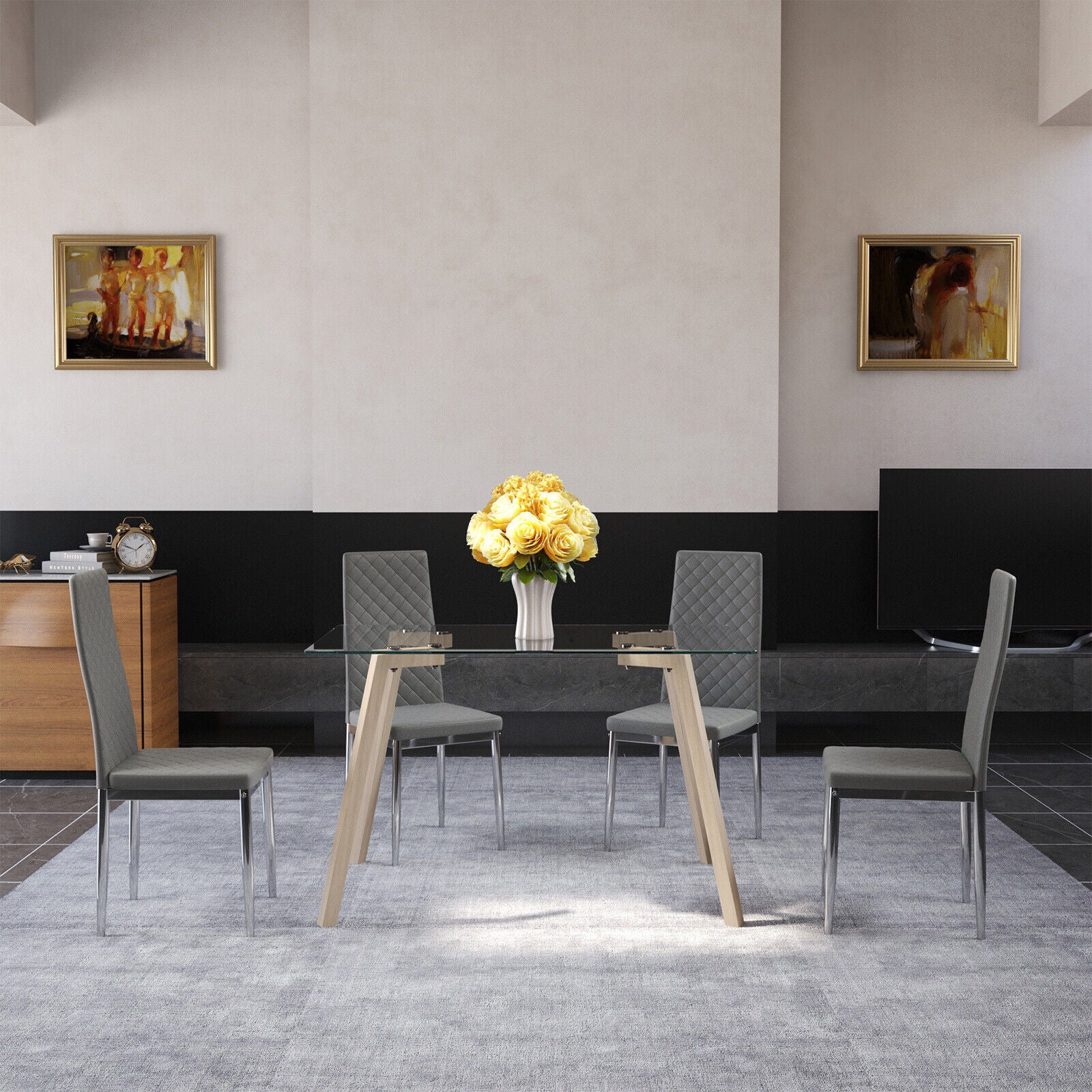 120cm Rectangle Dining Table Gatherings of Family Dinette Side PU Leather Chairs