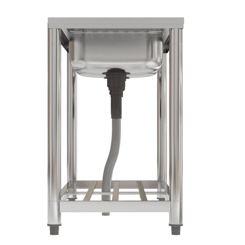 120cm Stainless Steel Commercial Kitchen Double Bowl Sink W/Shelf& Left Platform