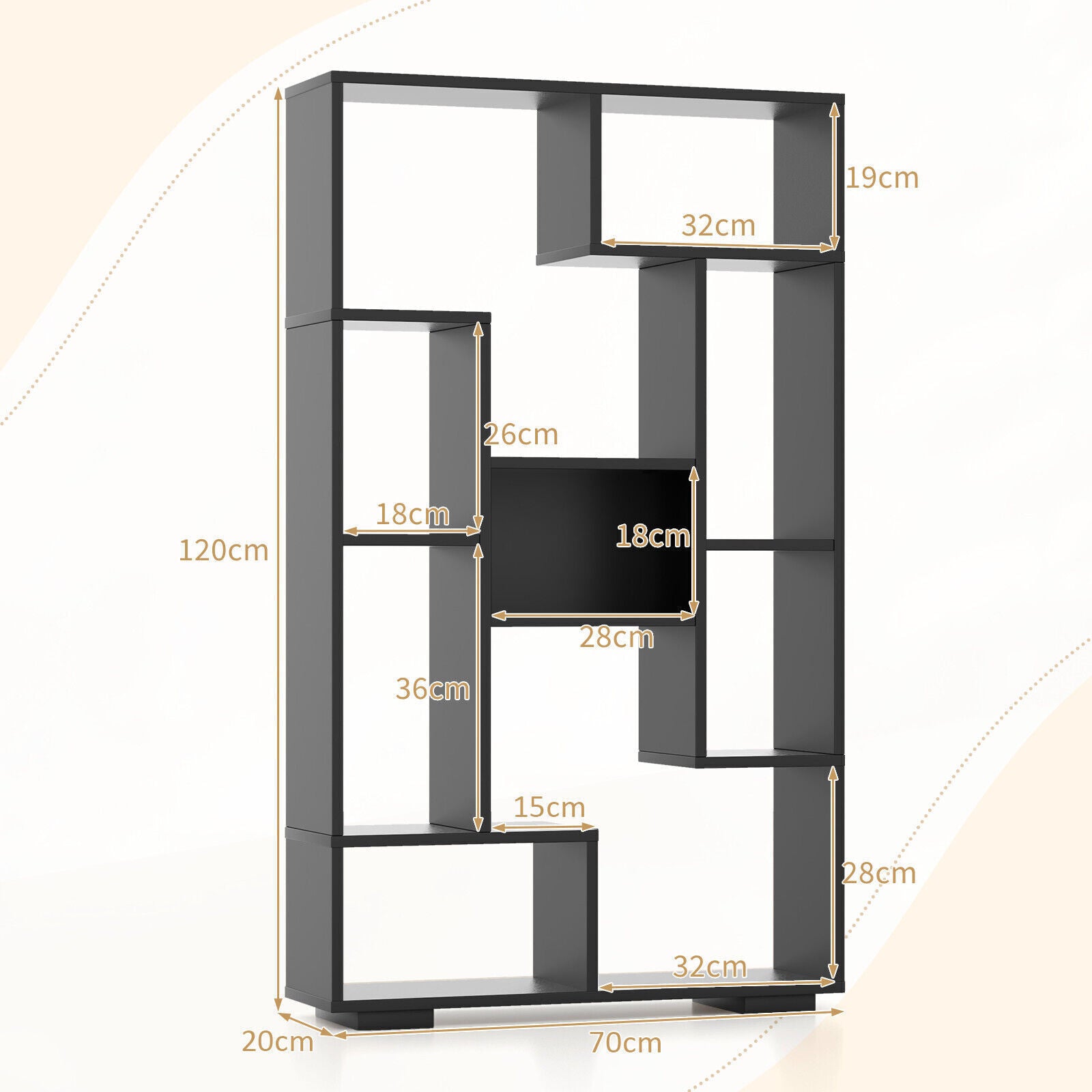 120cm Tall Bookshelf Modern Geometric Bookcase Book Storage Organizer Black