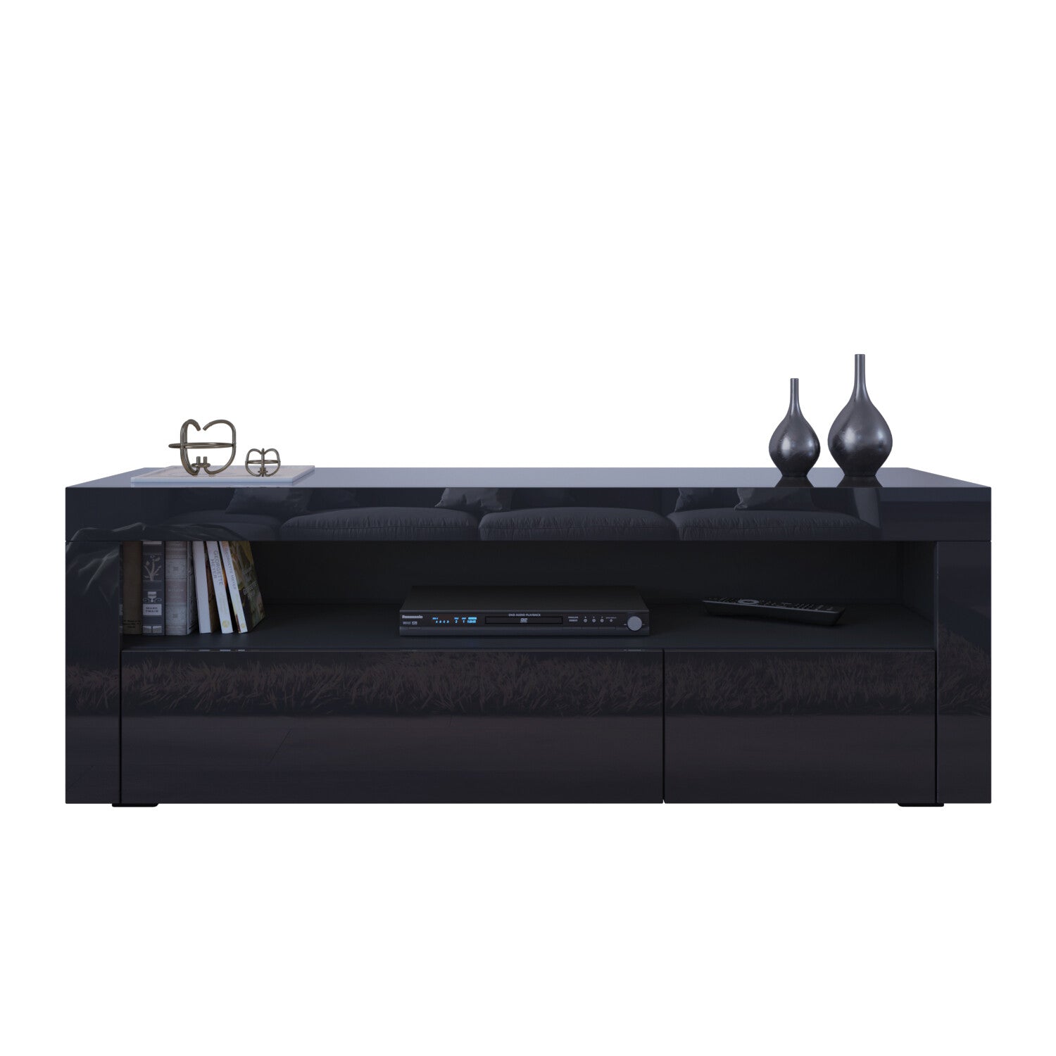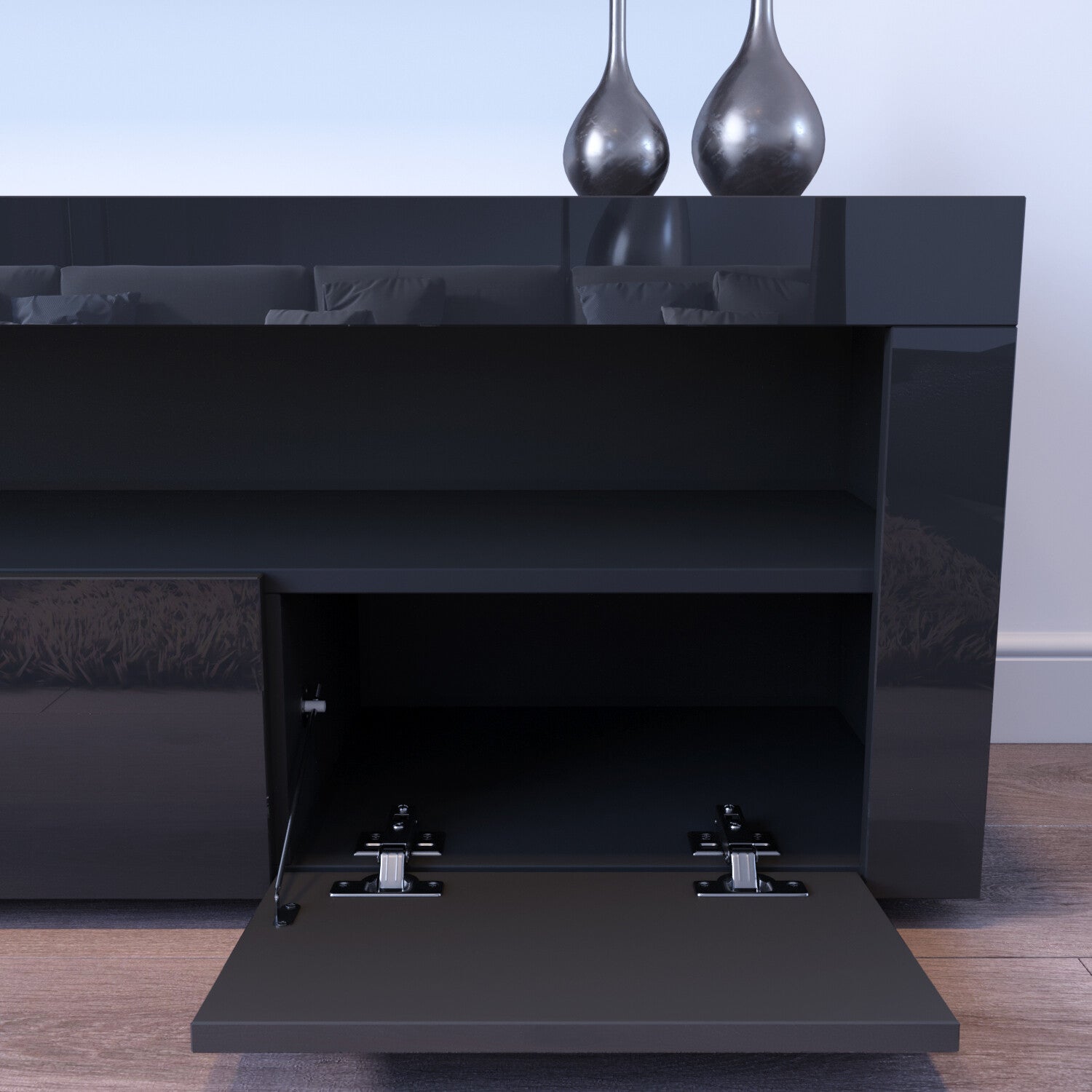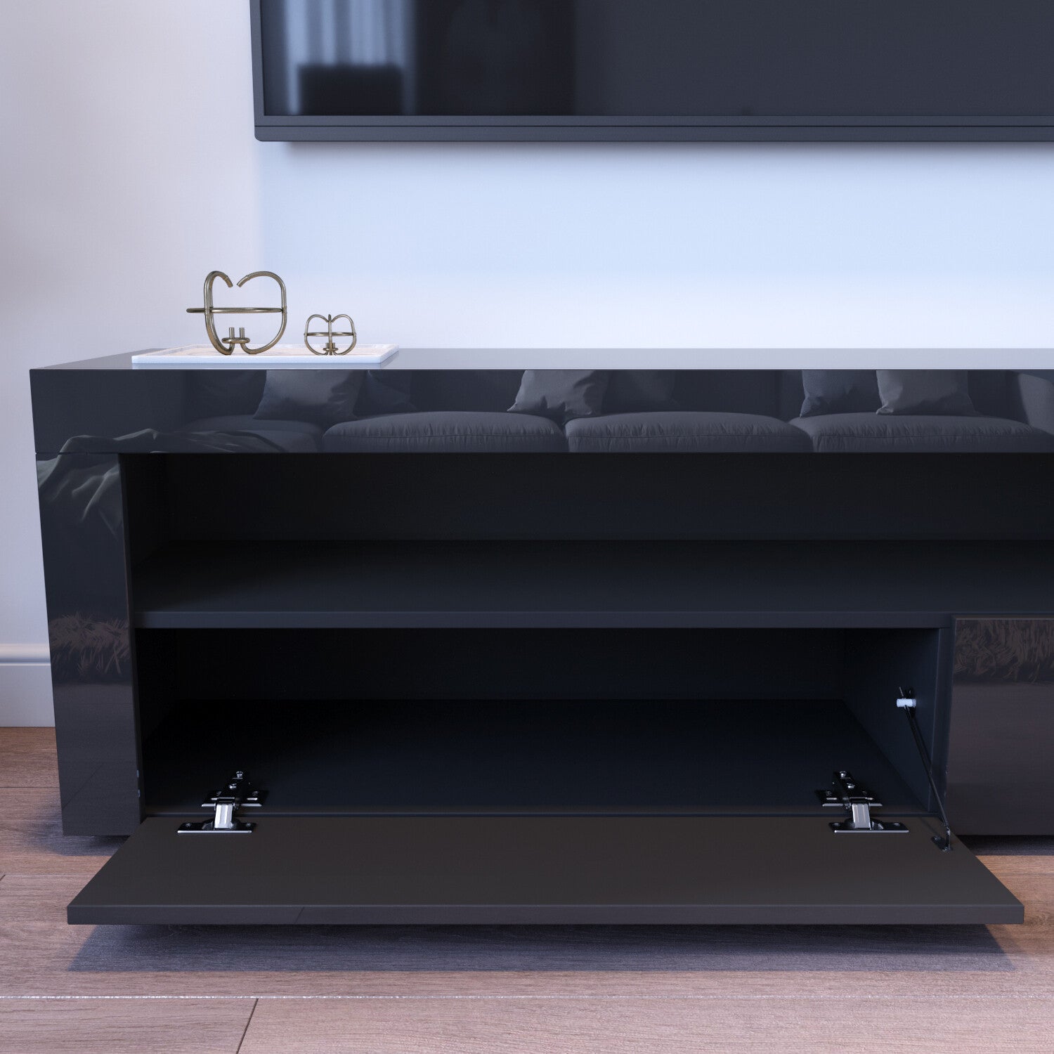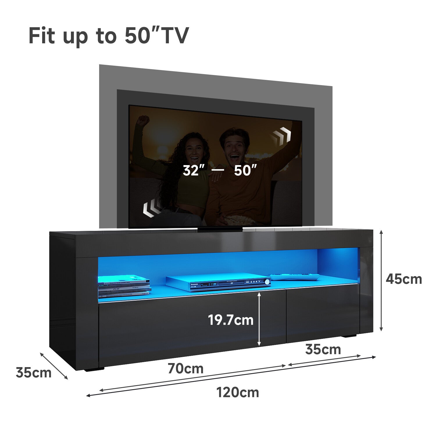 120cm TV Unit Cabinet TV Stand Black High Gloss with LED Lights Storage Drawers