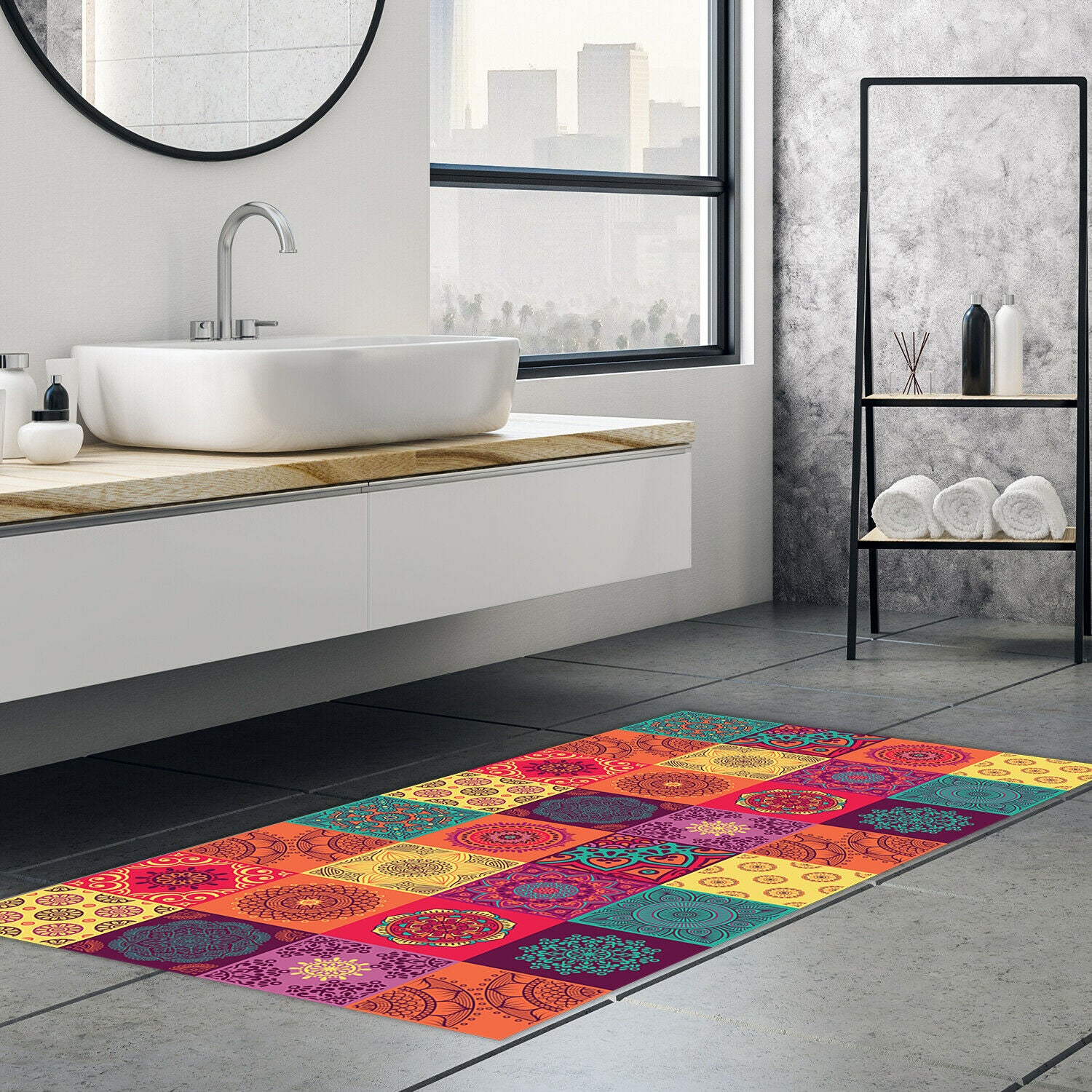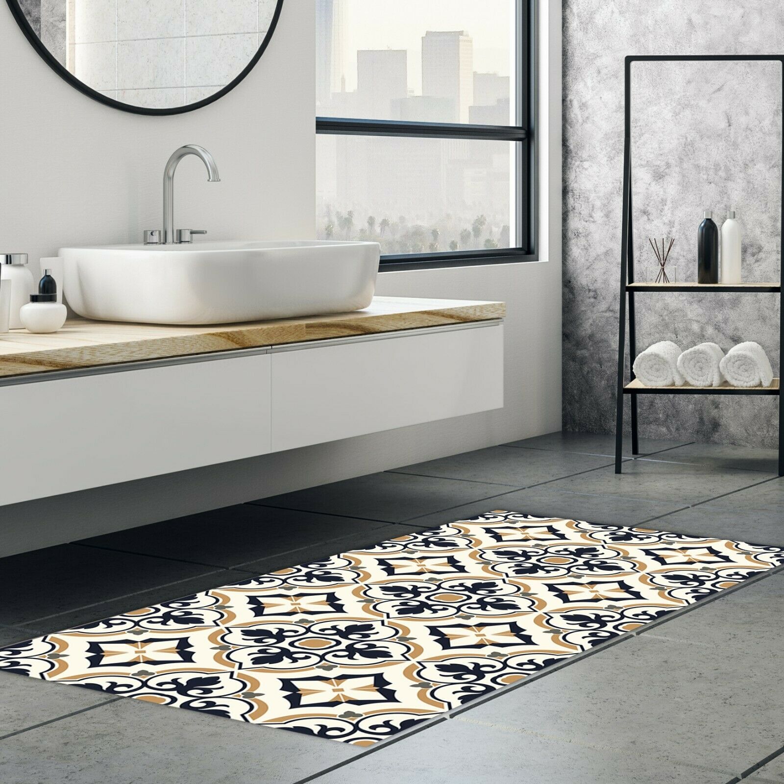 120cm Vinyl Floor Mat Rug Tile Mosaic Pattern Non Slip Easy Clean Home Decor