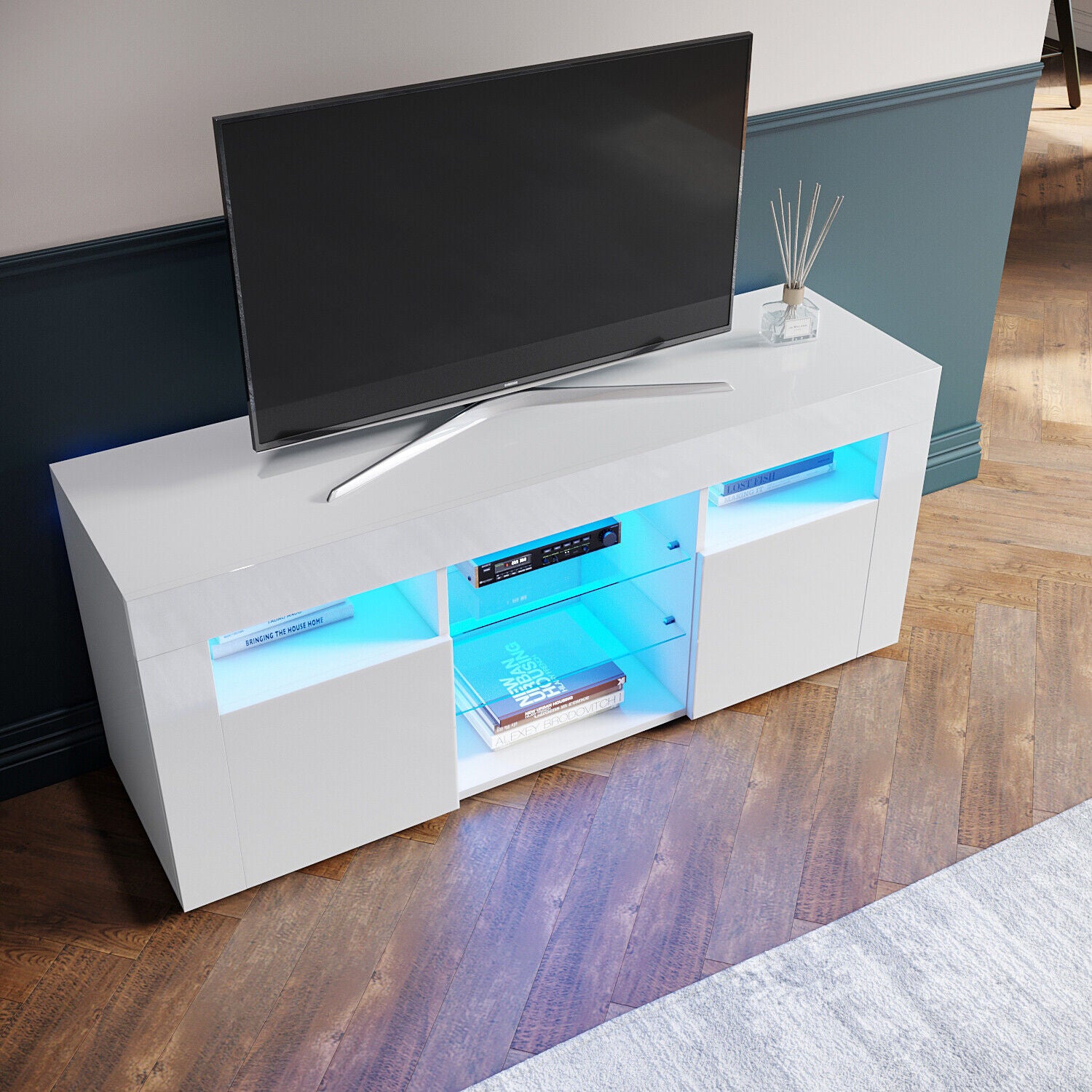 120cm White High Gloss TV Table Stand Entertainment Cabinet Unit with LED Light