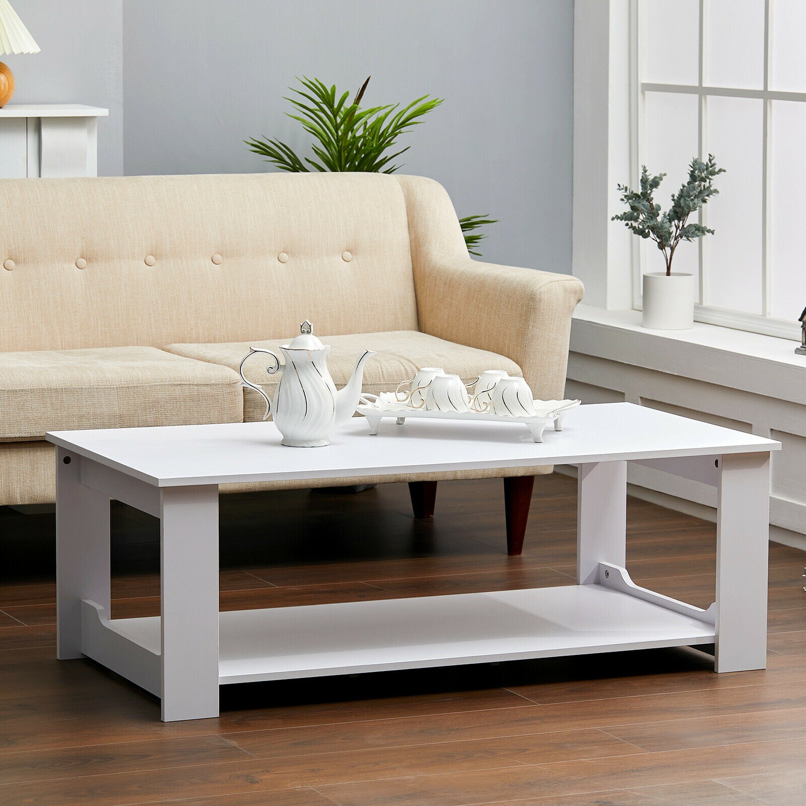 120x60cm Rectangle Coffee Tea Table 2 Tier Wooden Living Room Reception Table