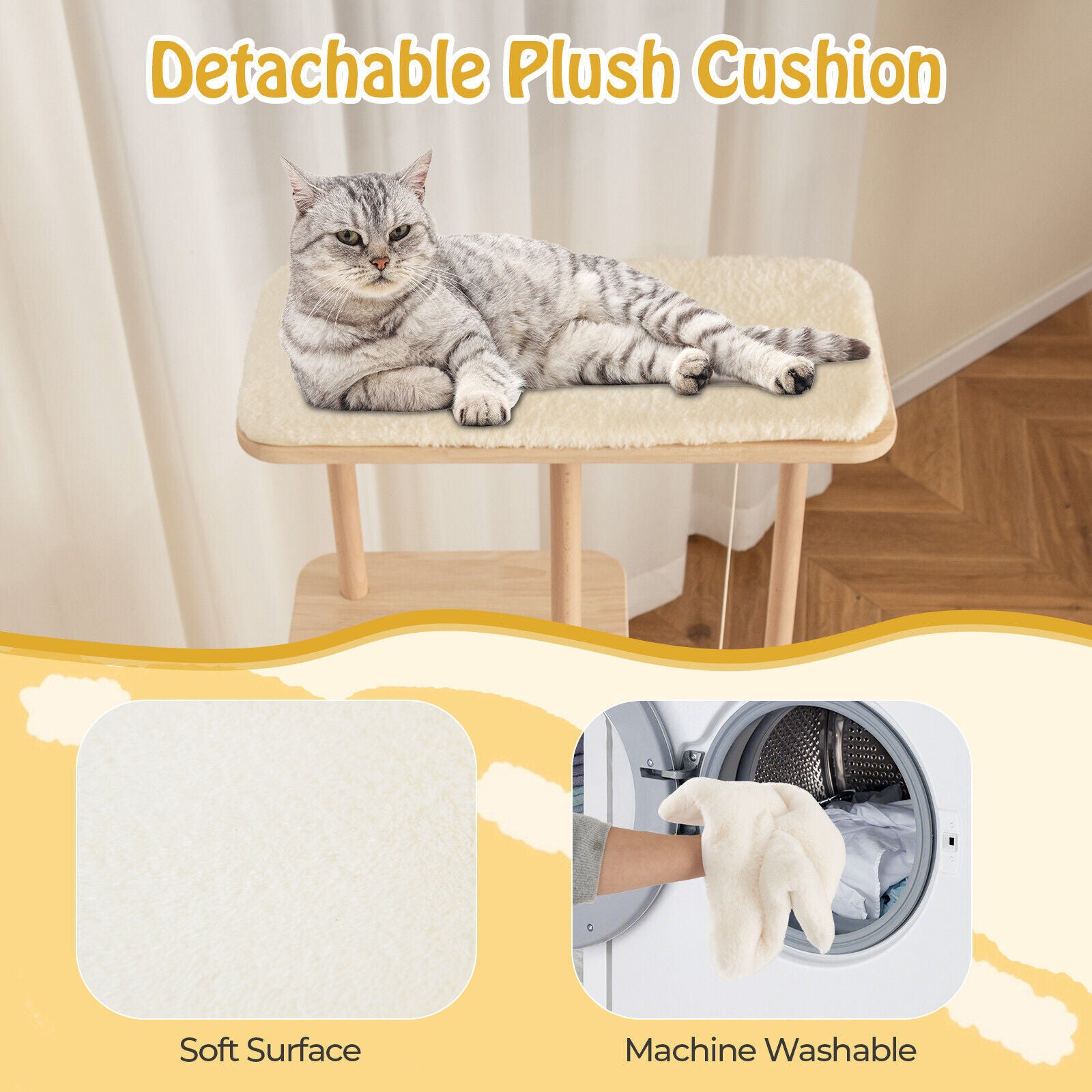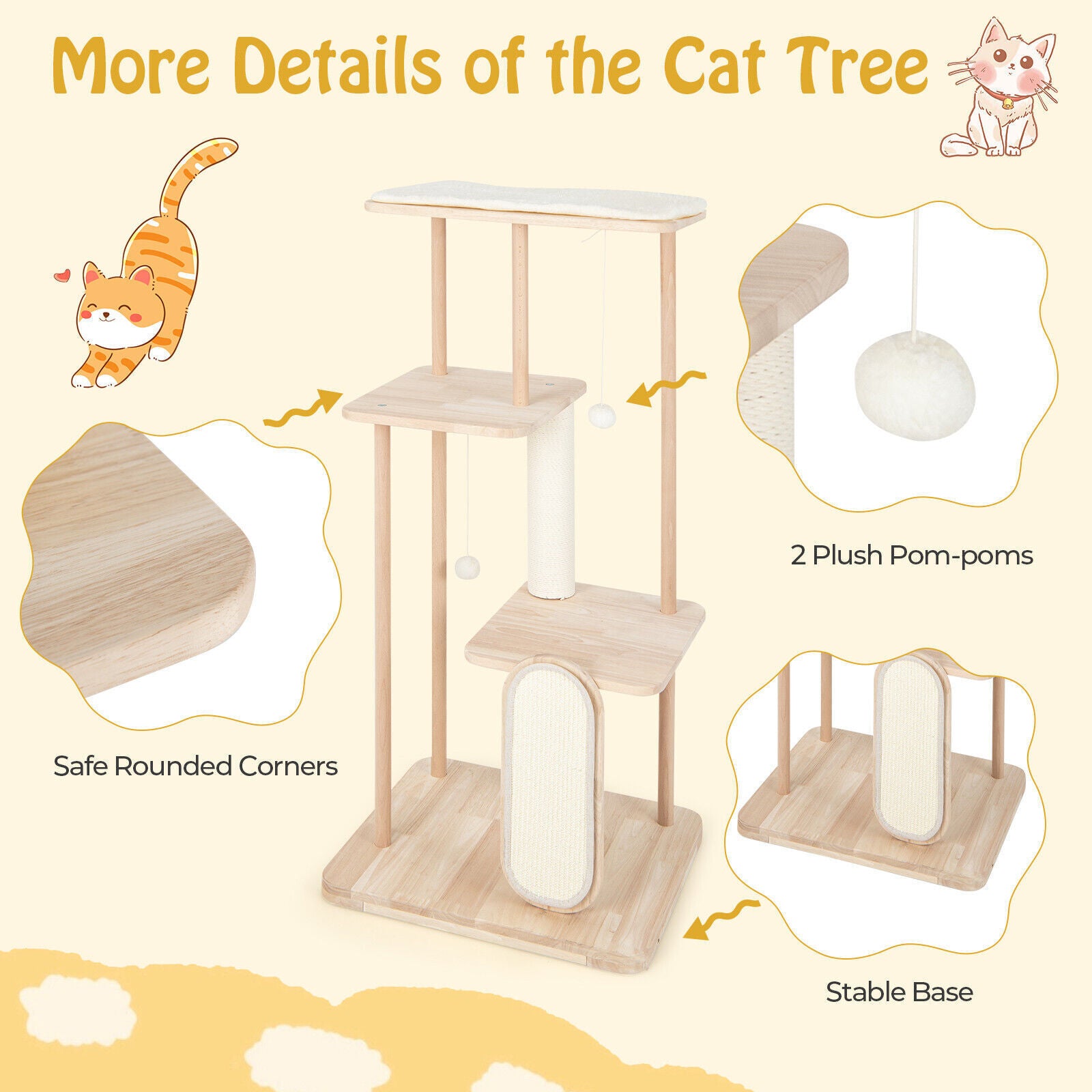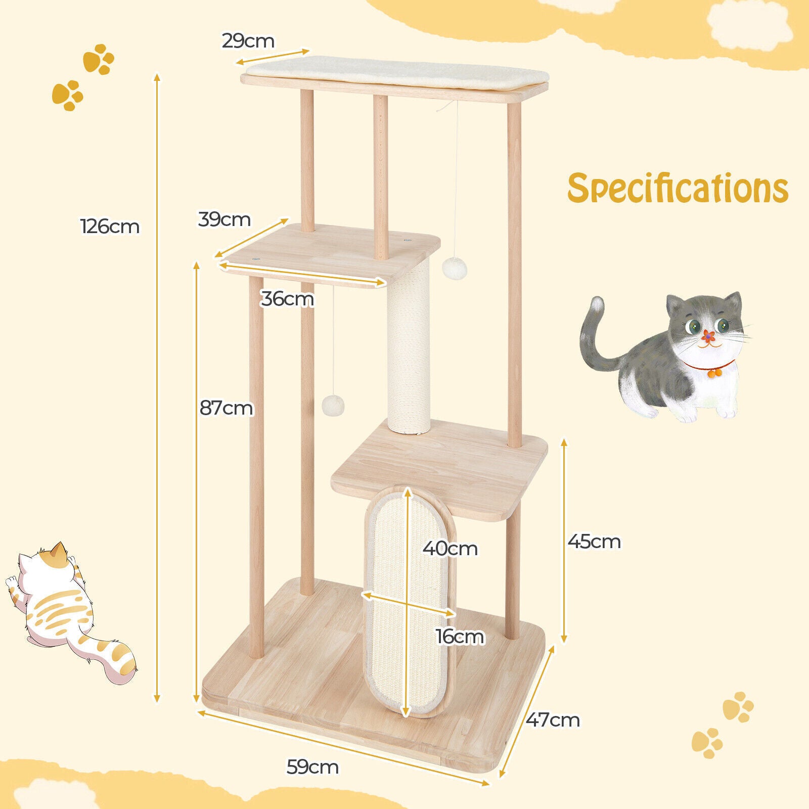 126 cm Tall Solid Wood Cat Tree Home 4-Tier Large Cat Tower w/Beech Post