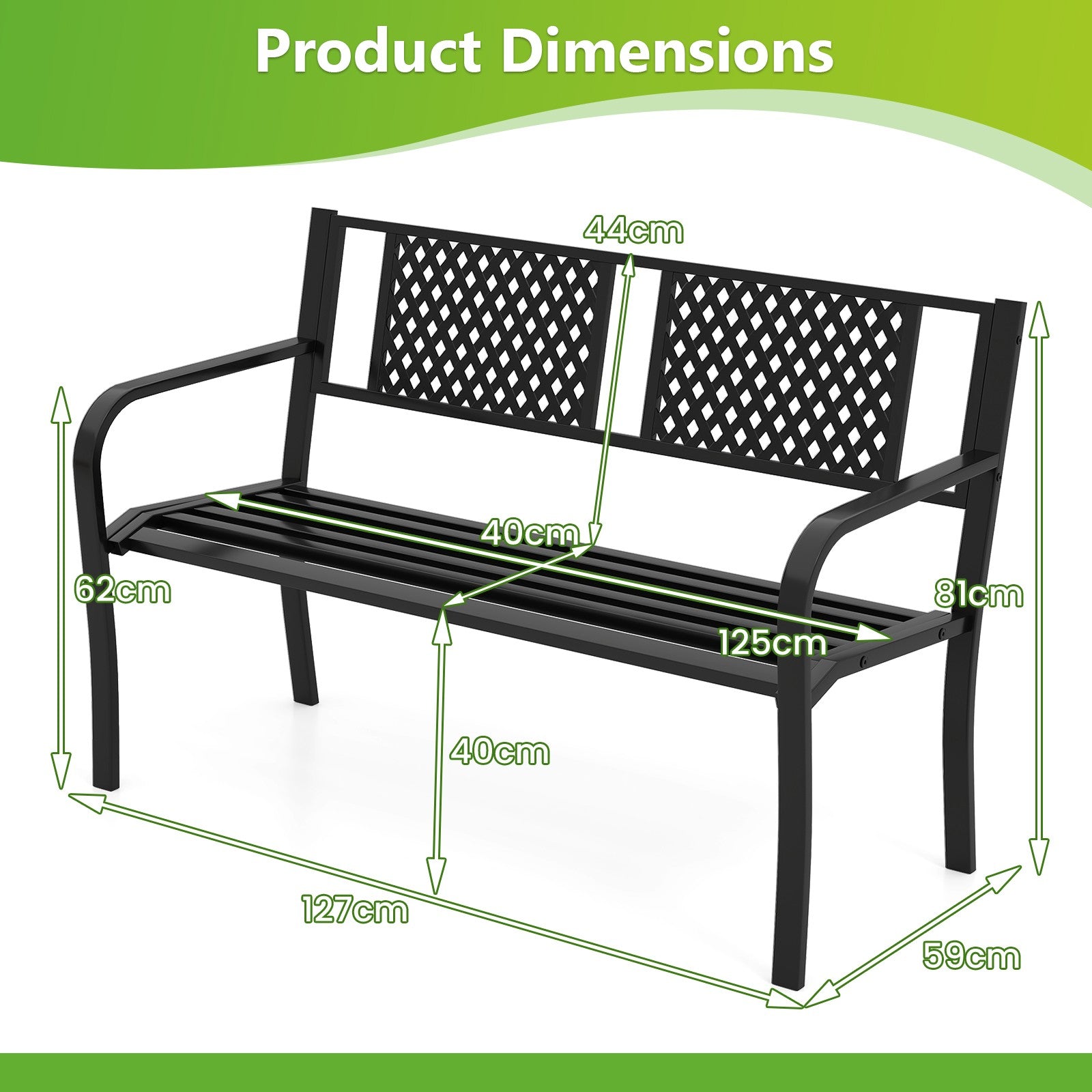 127CM Garden Bench Outdoor Bench for 2-3-Persons Black