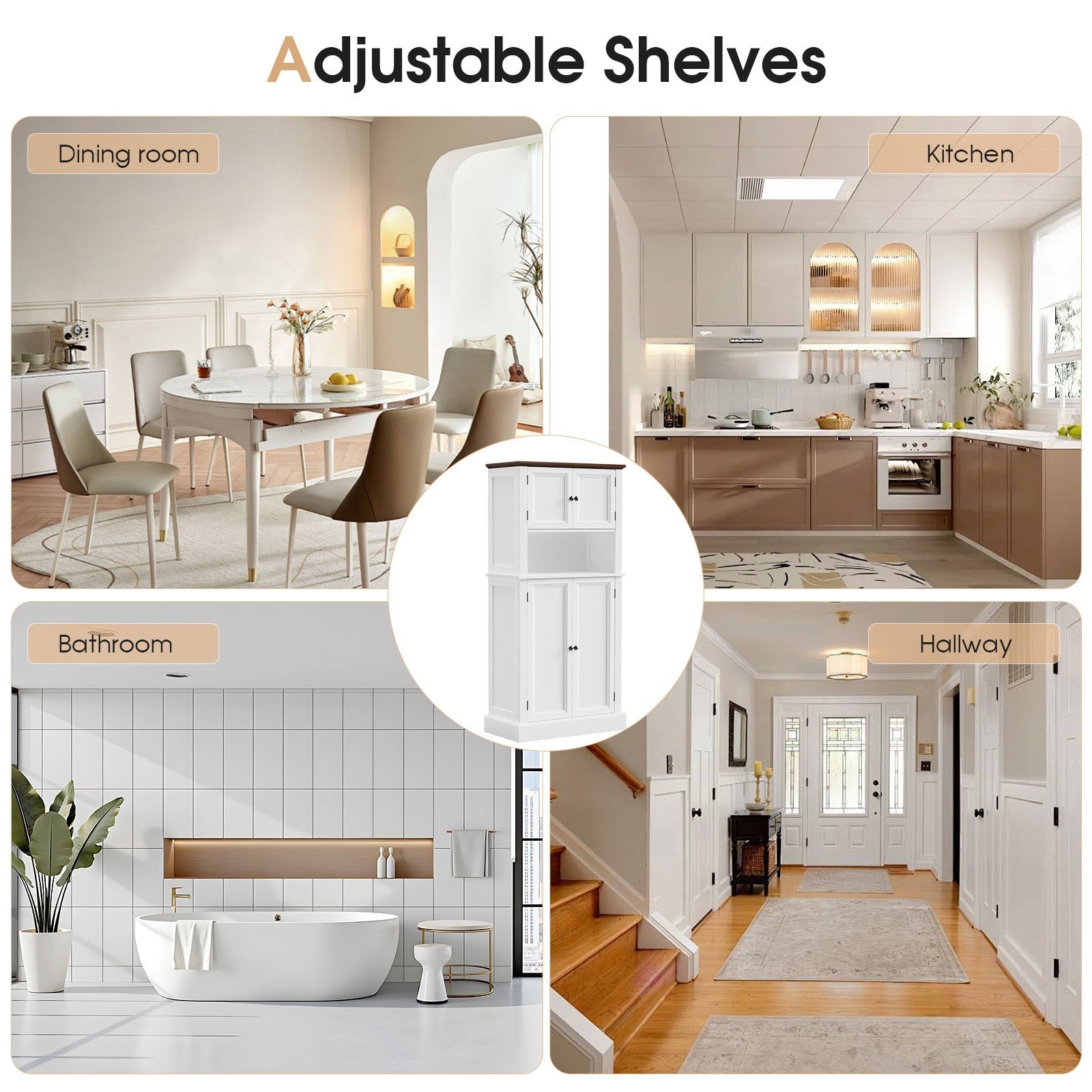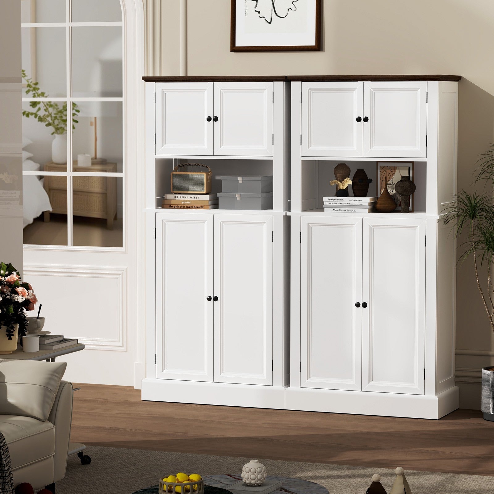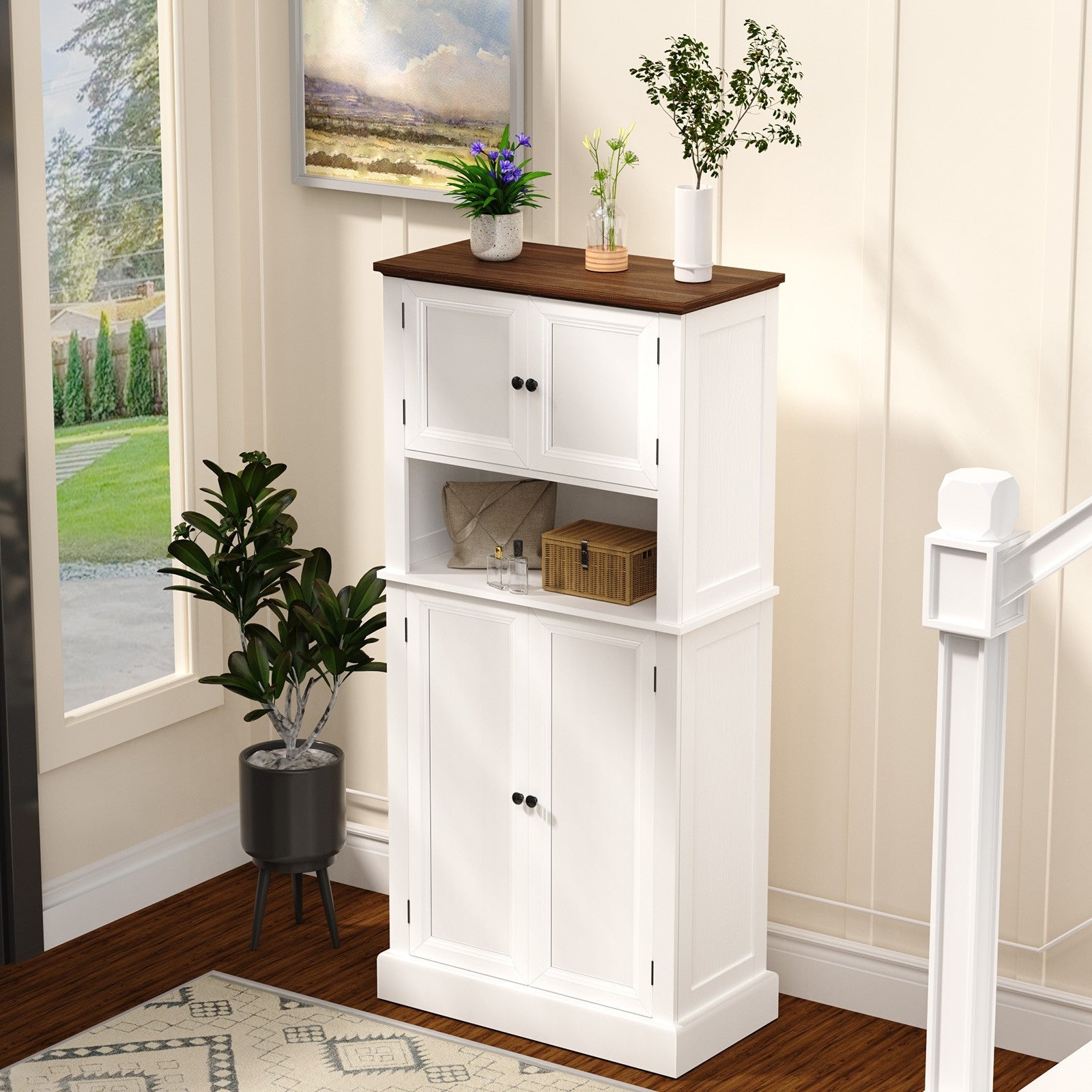128cm Freestanding Kitchen Cupboard 4-door Storage Cabinet & Open Compartment UK