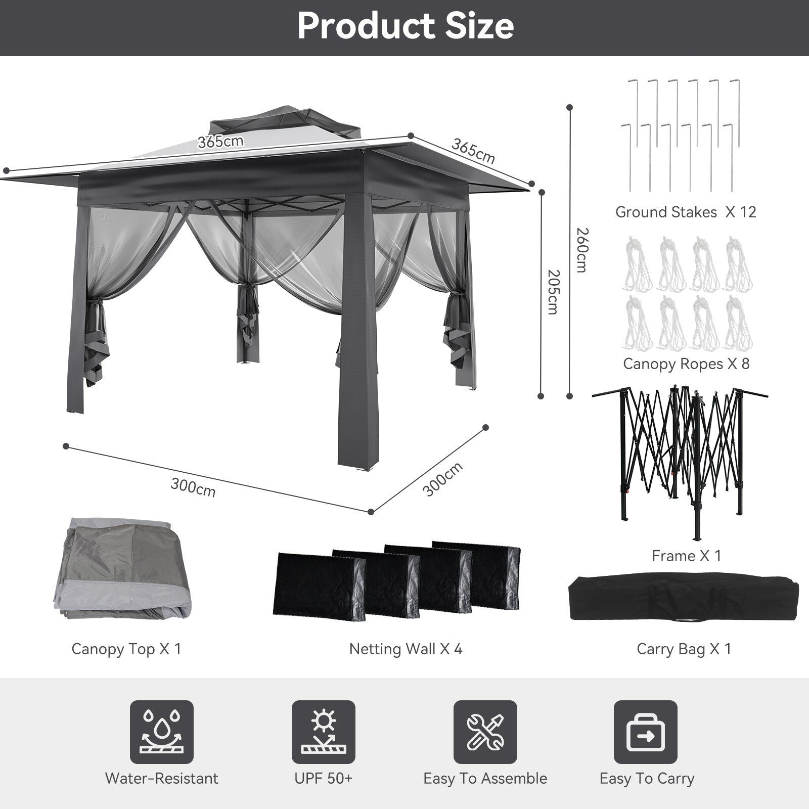 Features Heavy Duty, Pop-up, UV Protected, Water-Resistant