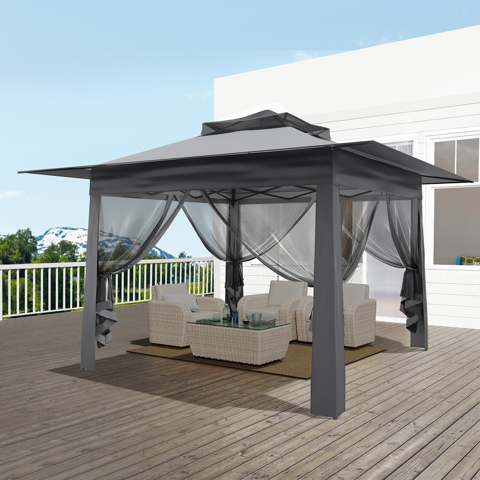 12FT Pop Up Garden Gazebo 3.65x3.65m Heavy Duty Backyard 2-Tier Party Tent