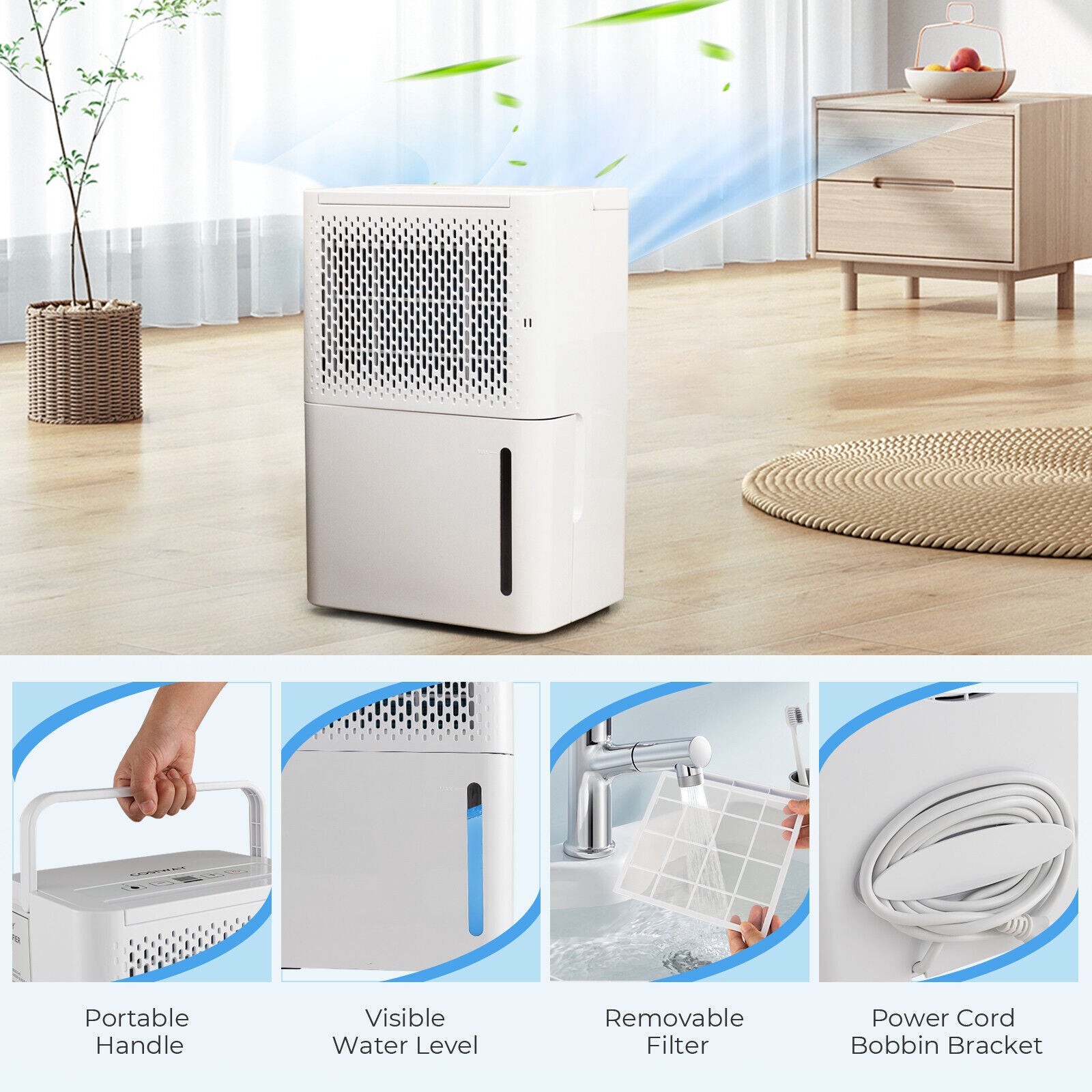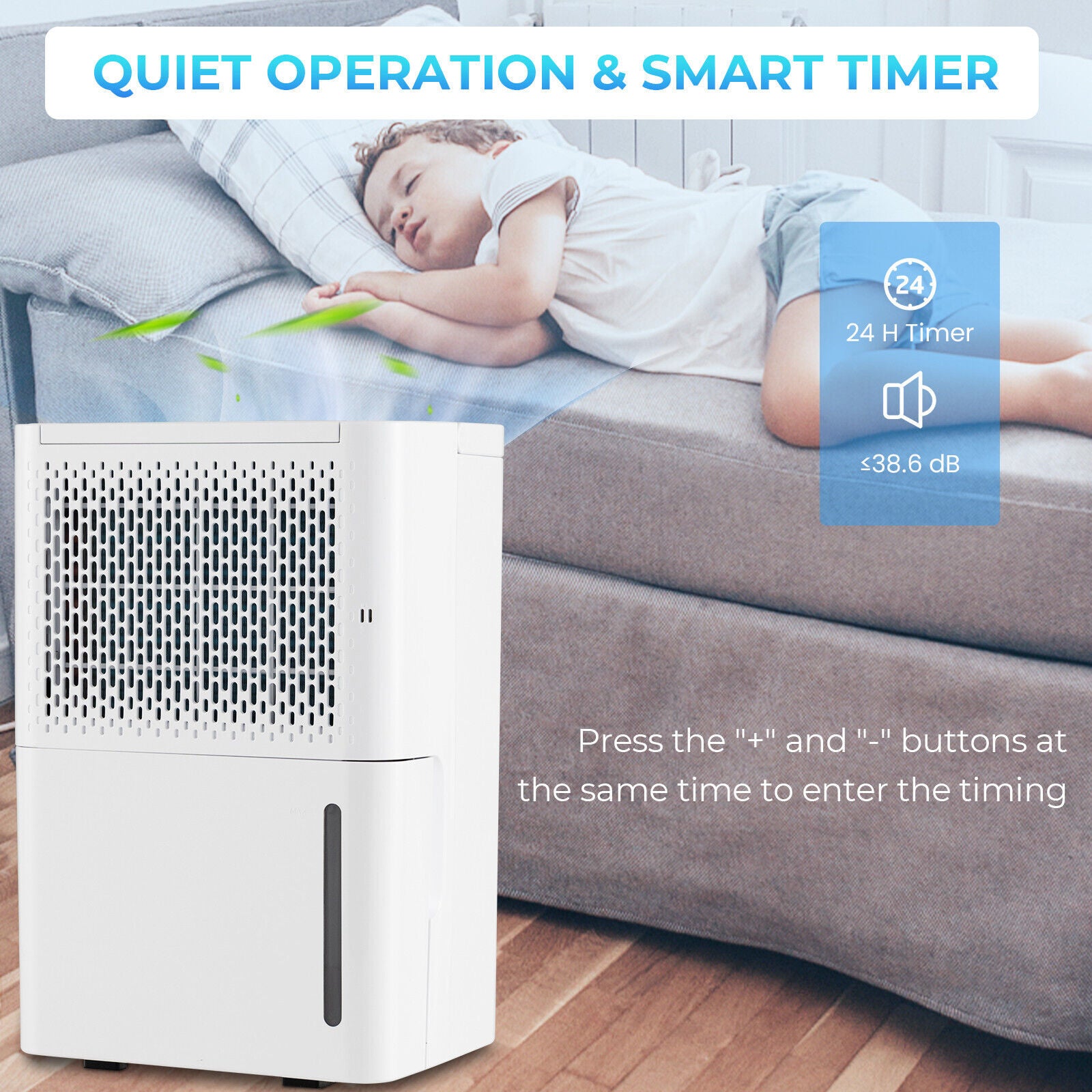 12L/D Portable Home Dehumidifier Quiet Electric Dehumidifier with 24H Timer
