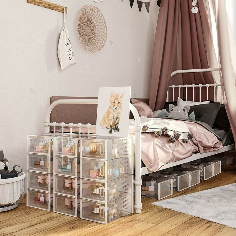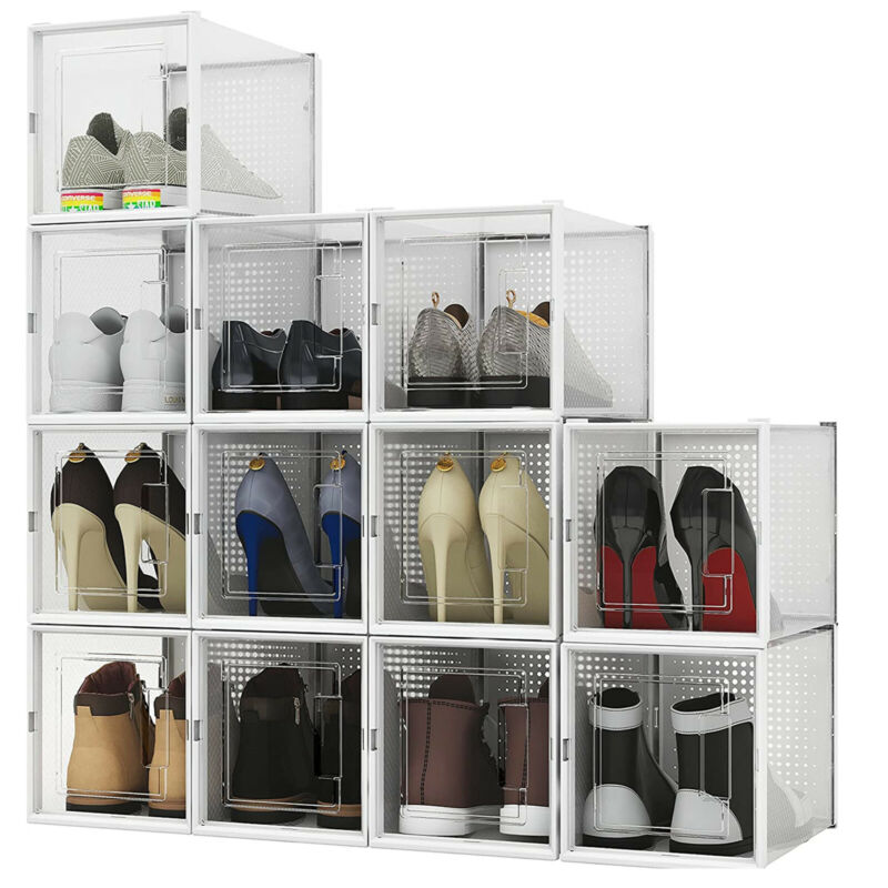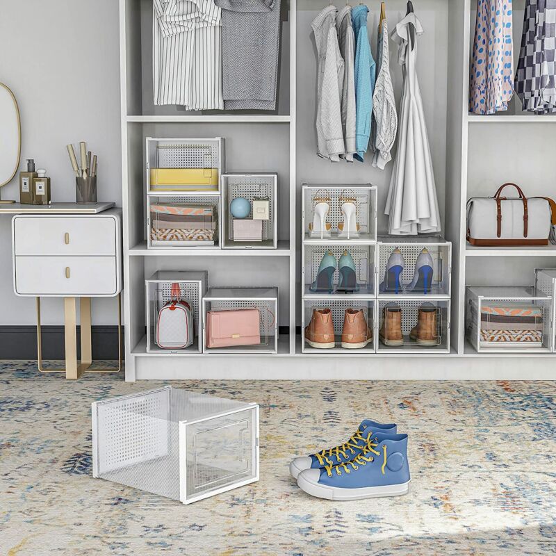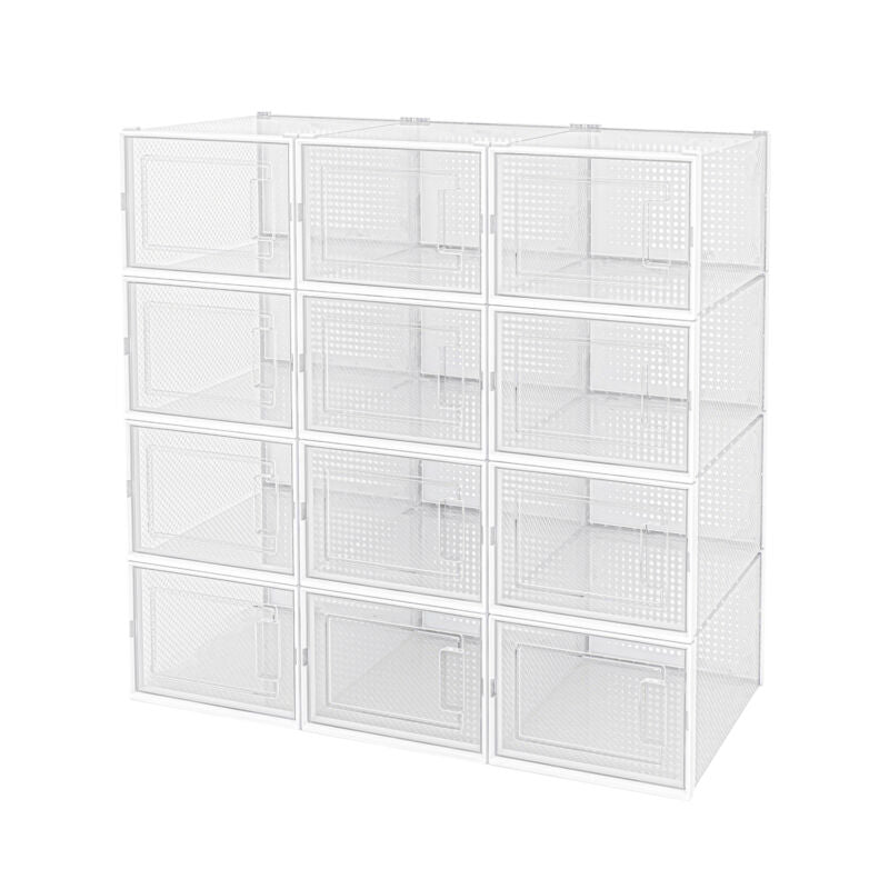 12PC Clear Plastic Shoe Storage Boxes DIY Drawer Stackable Foldable Organizer