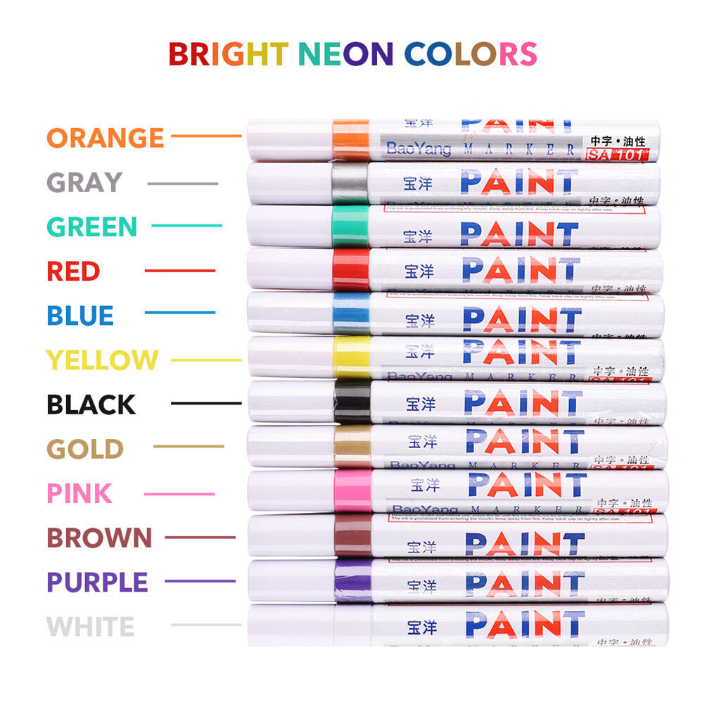 12PCS Acrylic Paint Marker Pens Permanent Art Rock Metal Glass Pebble Waterproof