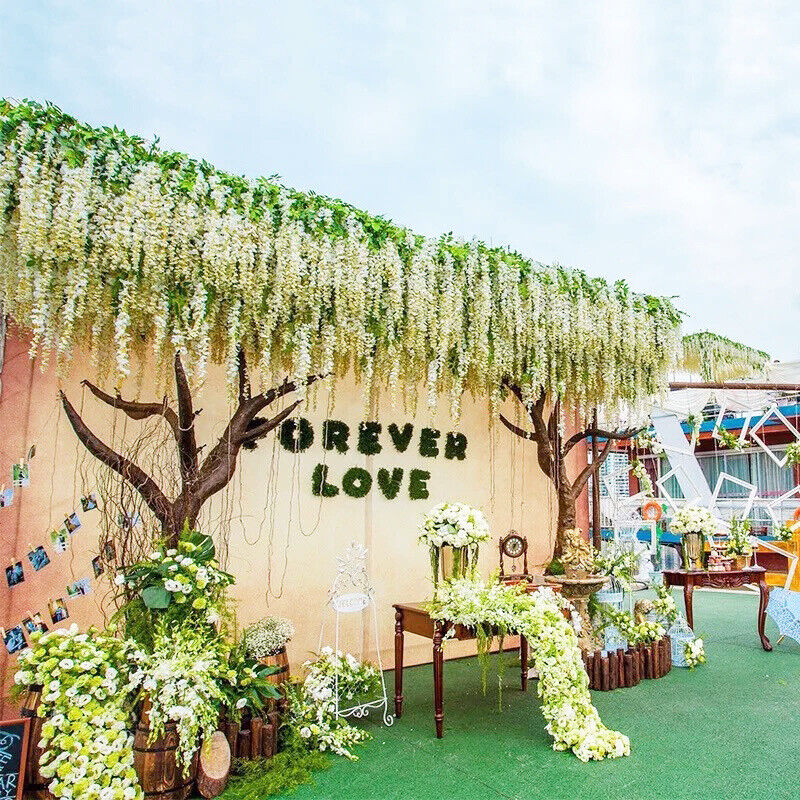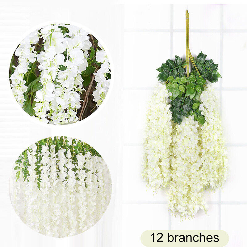 12pcs Artificial Fake Hanging Wisteria Silk Flowers Vine Plant Home Garden Decor