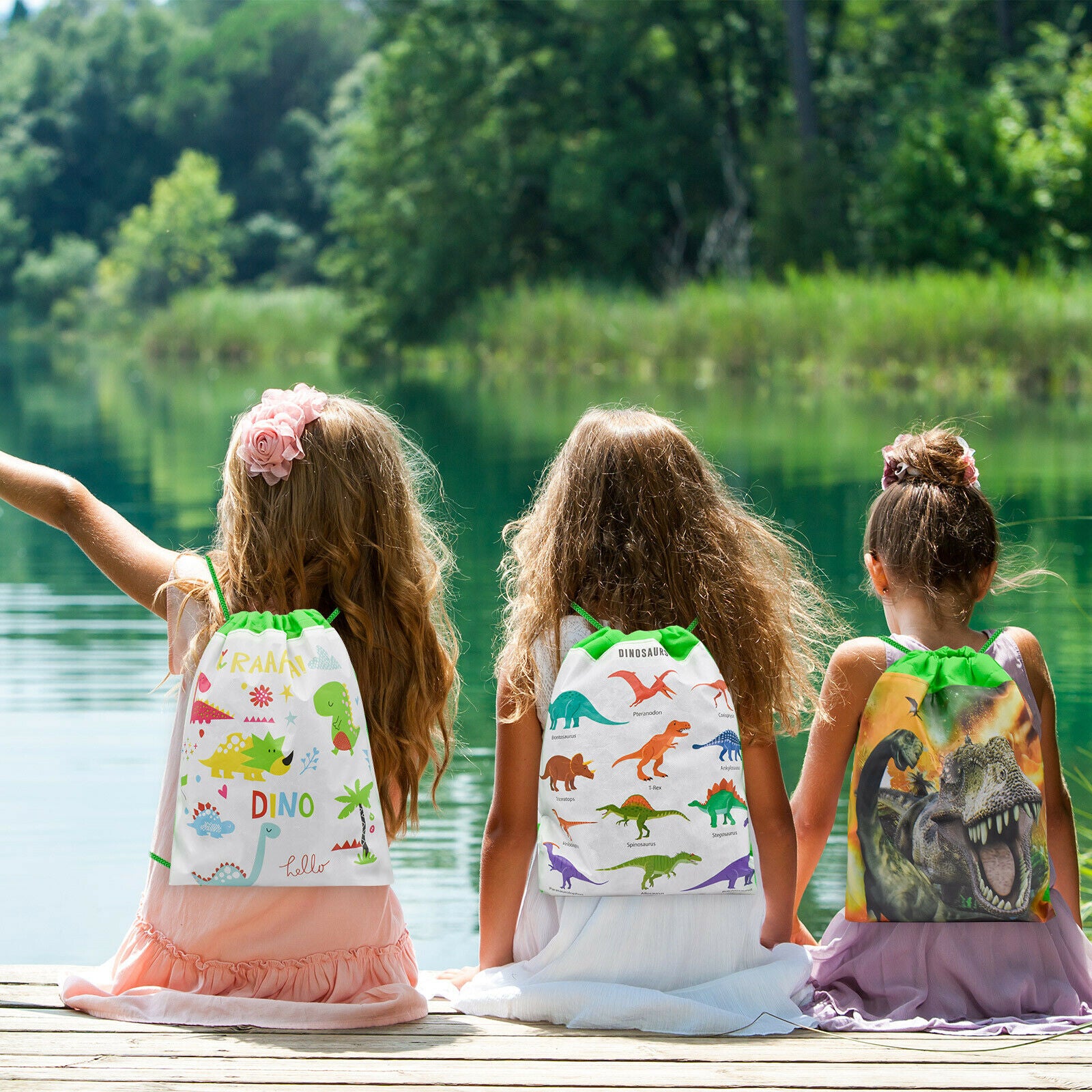 12PCS Personalised Custom Dinosaur Boys Girls Drawstring PE Swimming School Bag