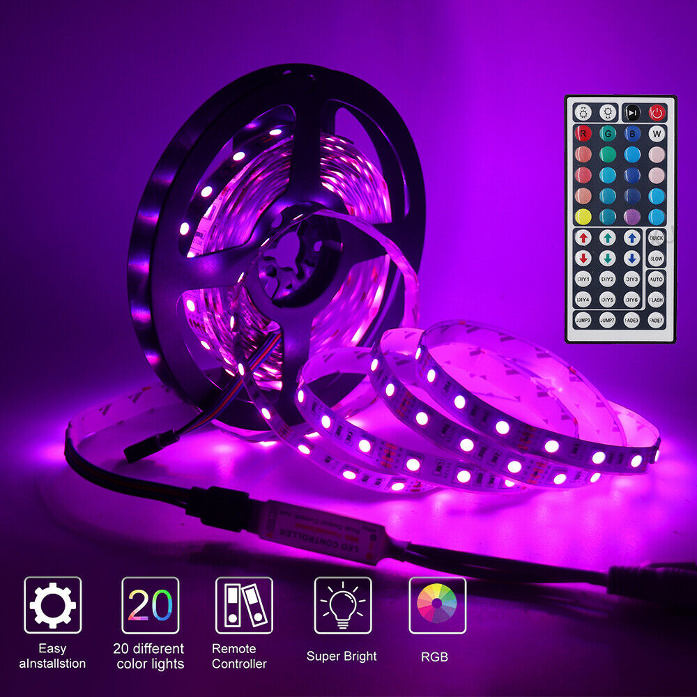 12V 1-5M LED Strip Lights 5050 RGB Color Changing Tape Cabinet Kitchen Lighting