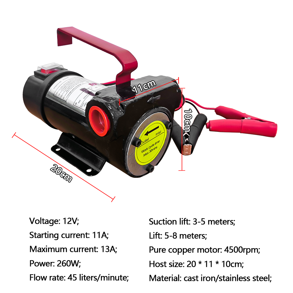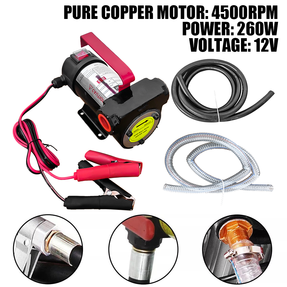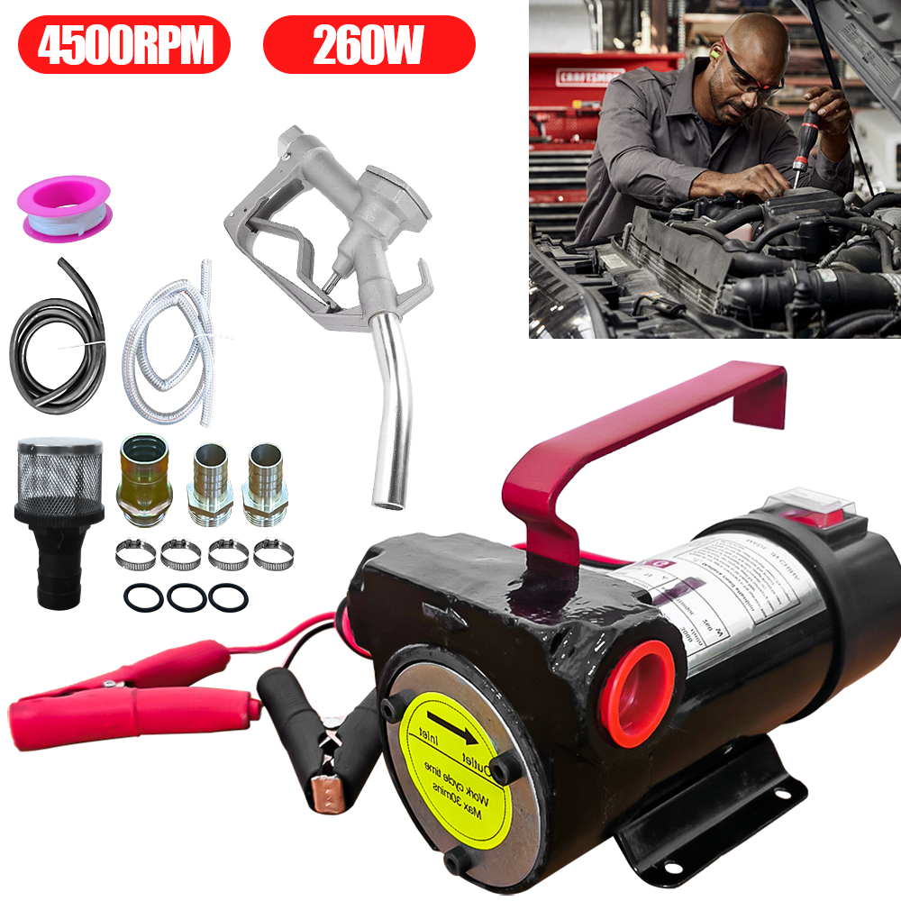 12V 260W Diesel Electric Fuel Transfer Pump Oil Dispenser with Nozzle Hoses Kit