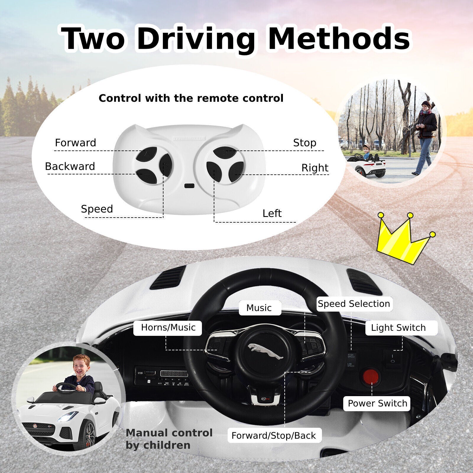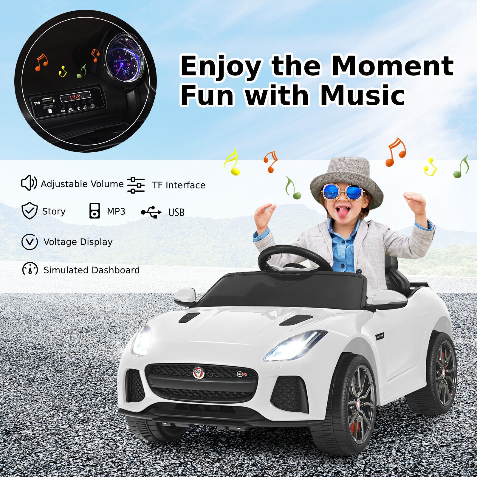 12V Jaguar F-Type SVR Kids Ride On Car Battery Powered Car w/ Remote Control