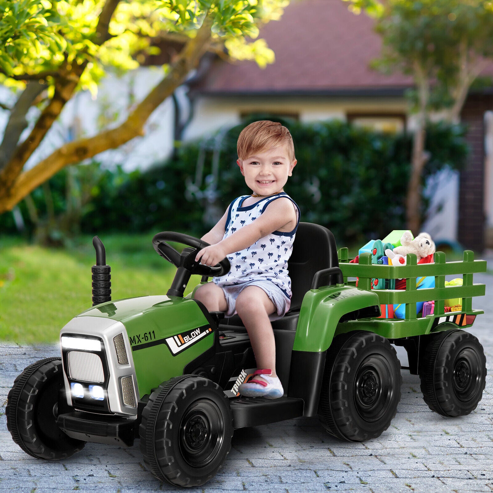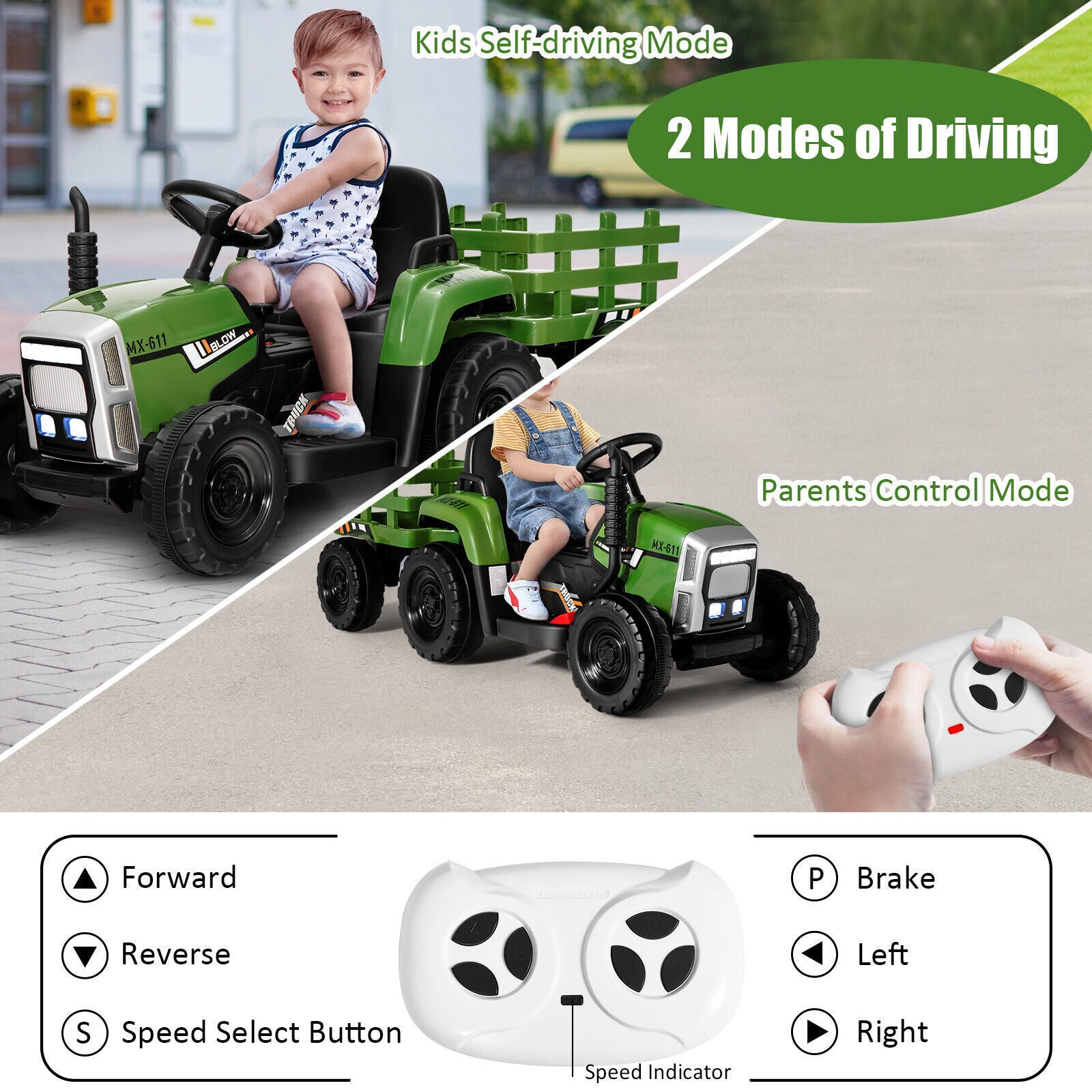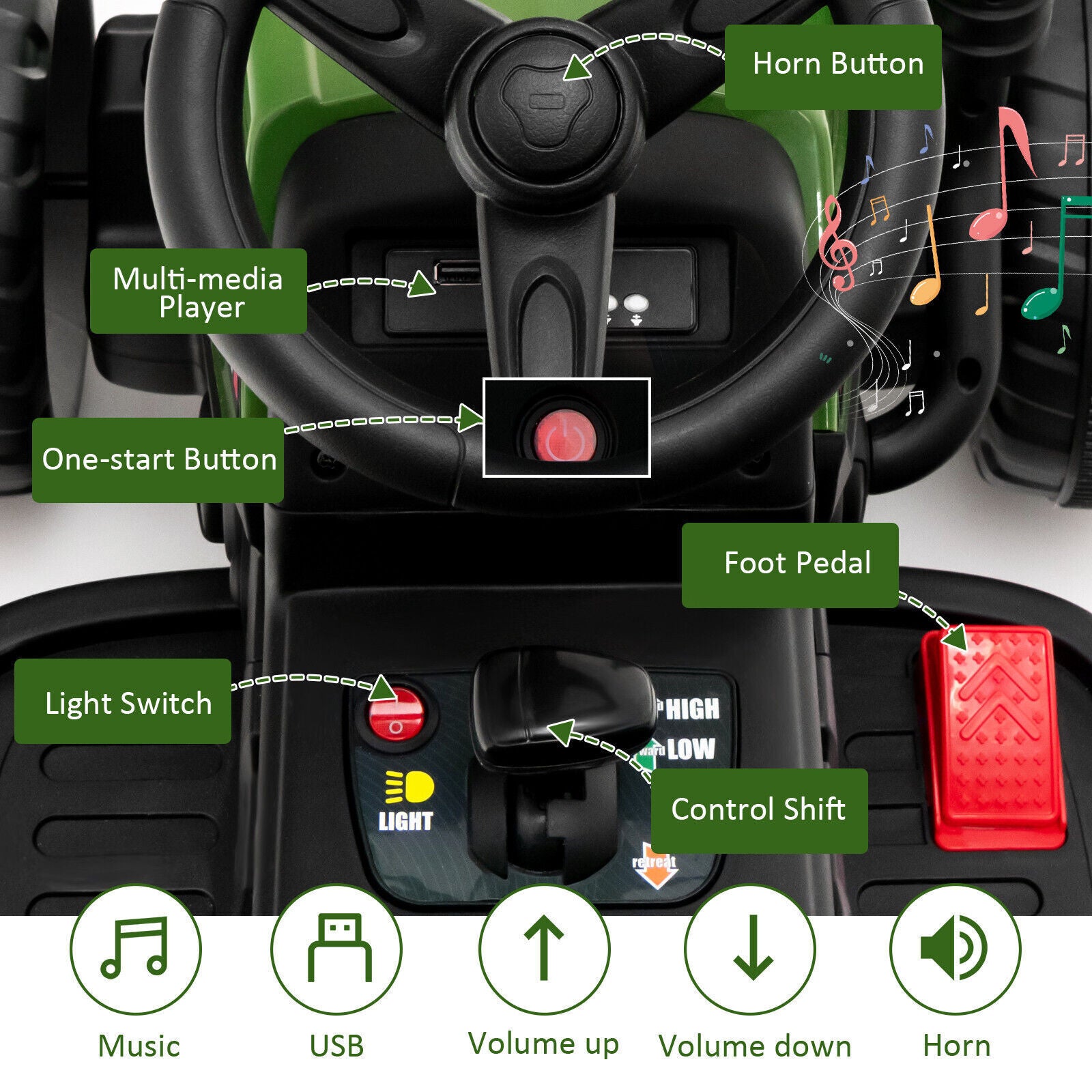 12V Kids Ride On Tractor W/ Trailer Electric 3-Gear-Shift Ground Loader Toy Car