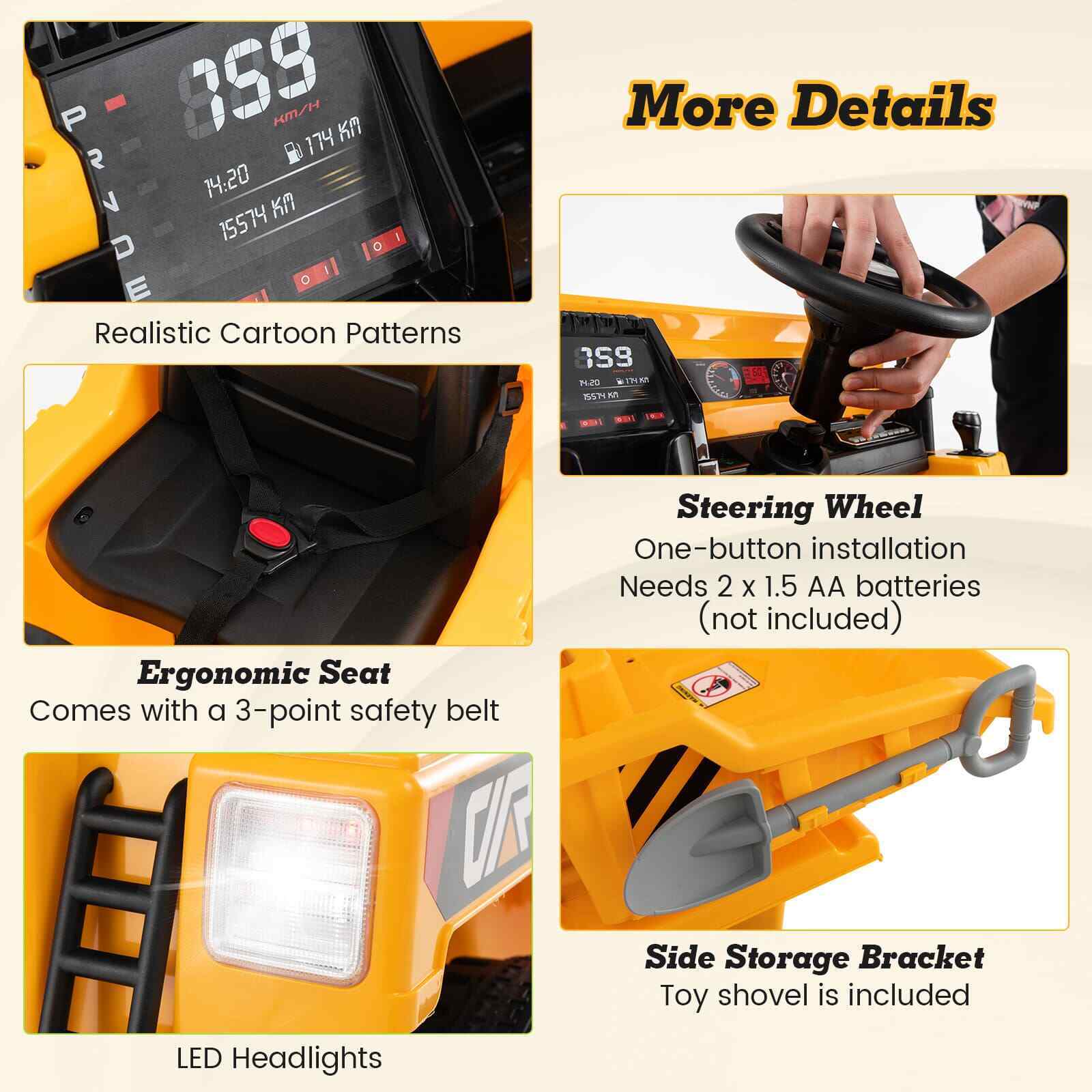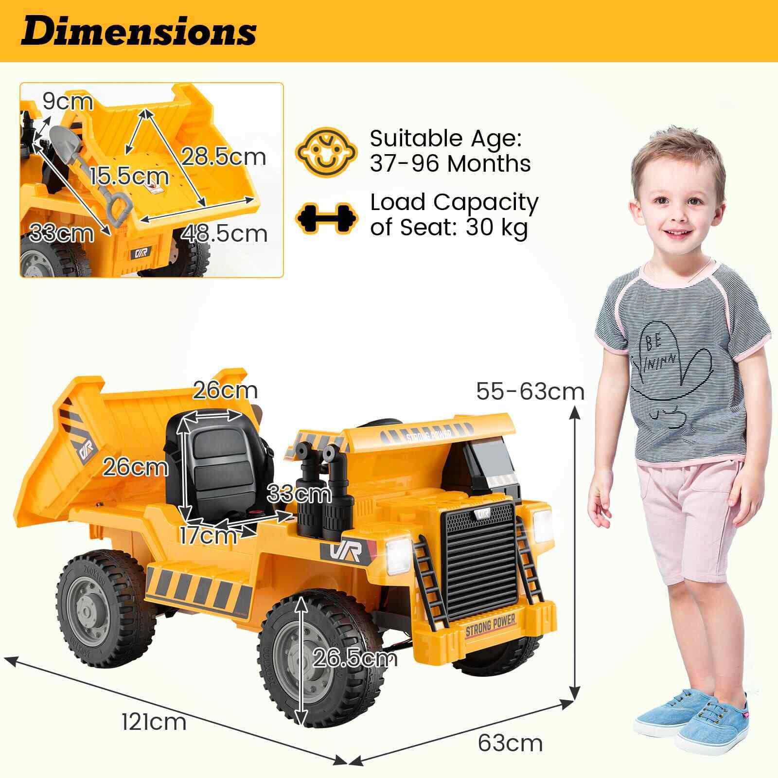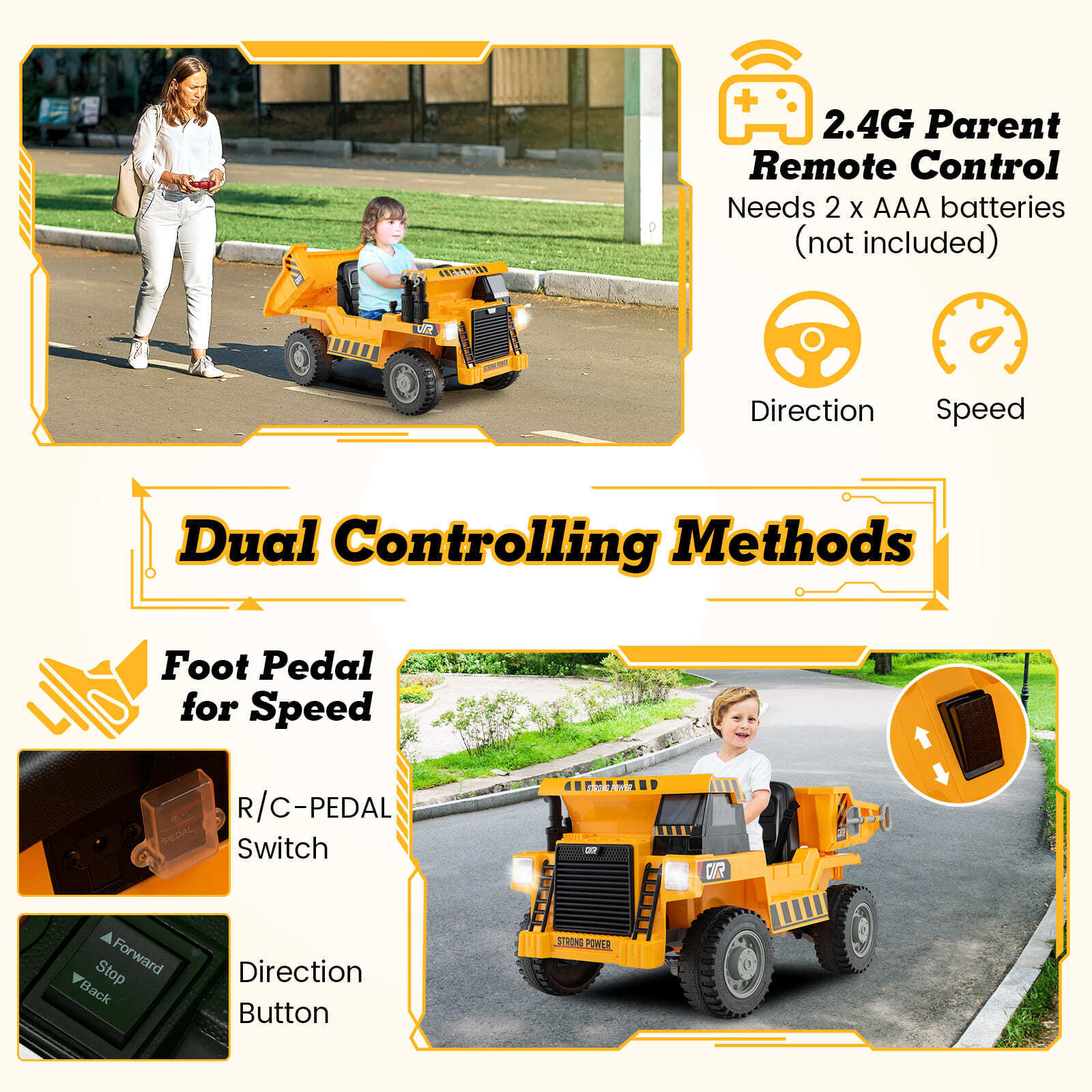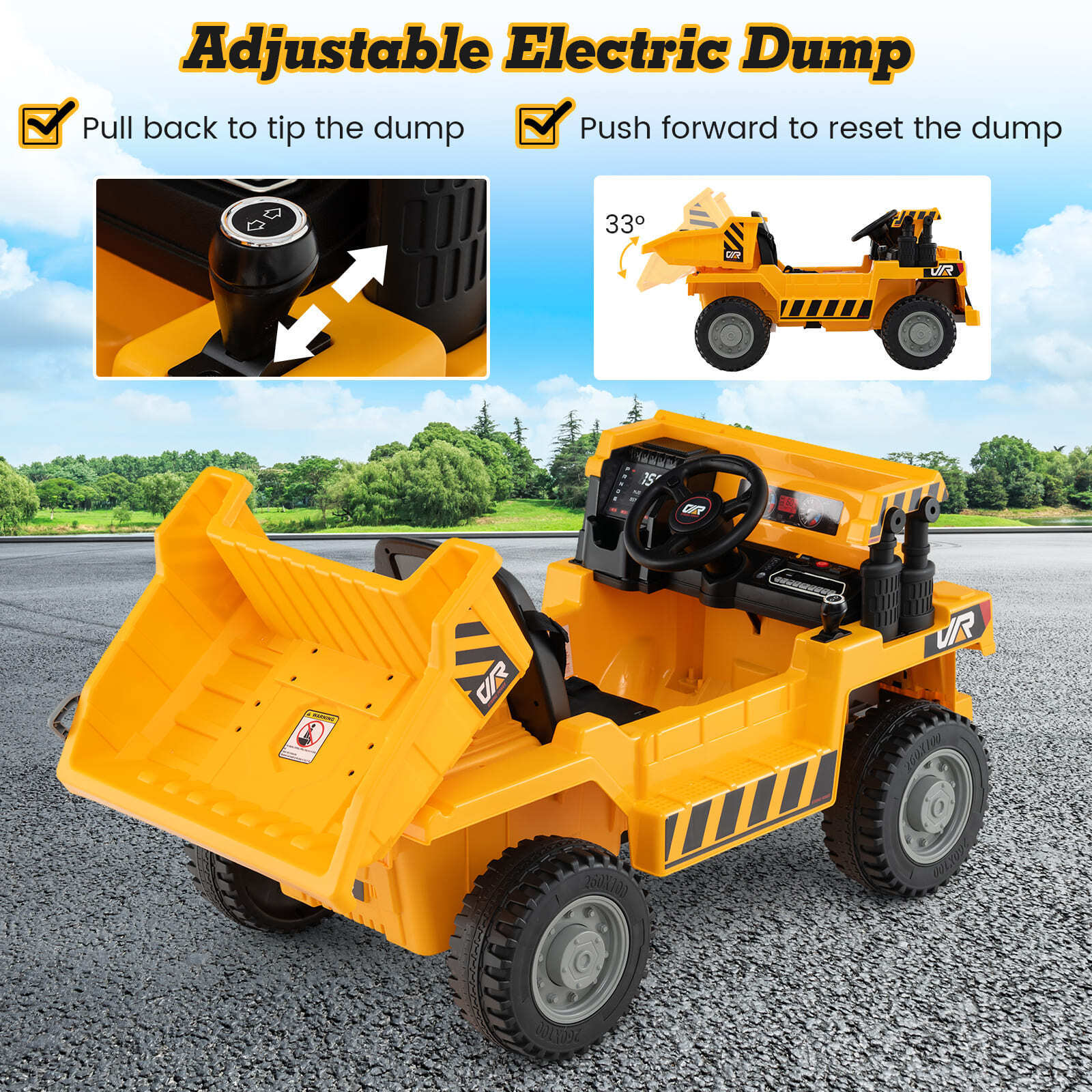 12V Ride On Dump Truck 4-wheeler Ride On Toy Car with Remote Control-Yellow