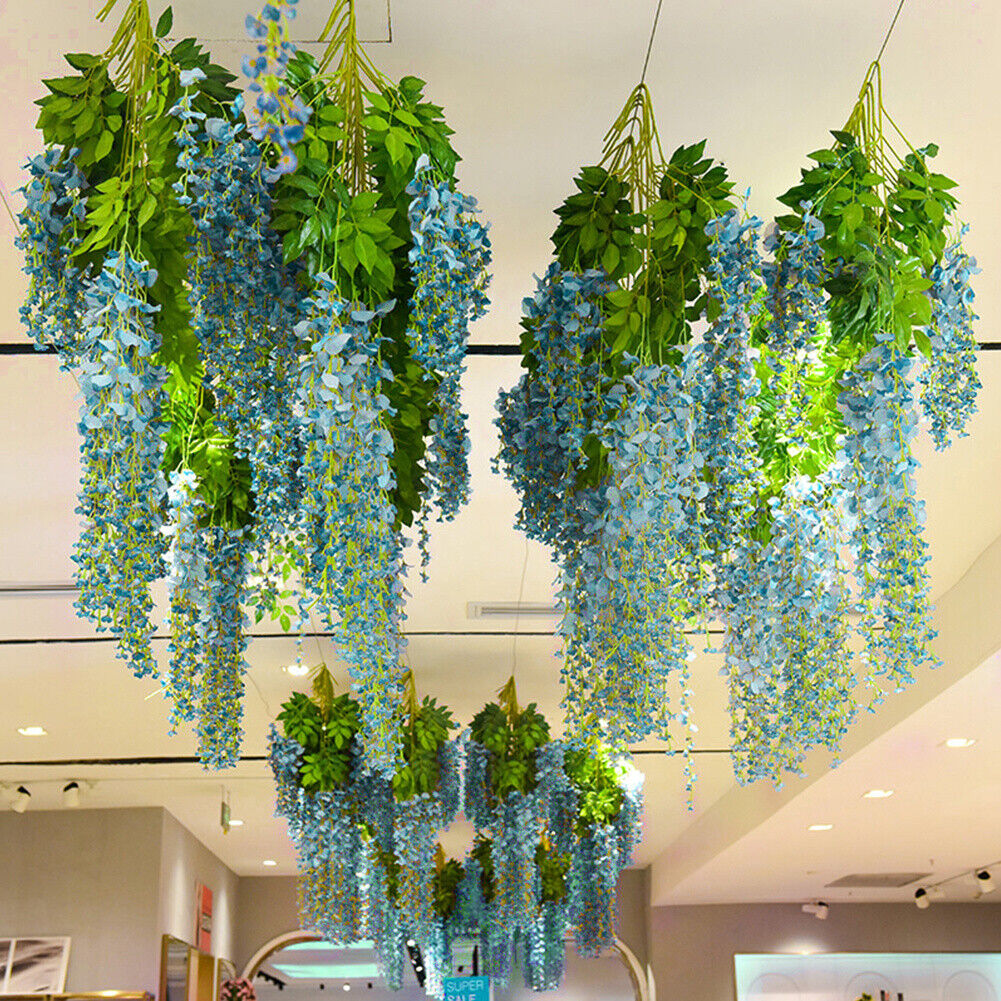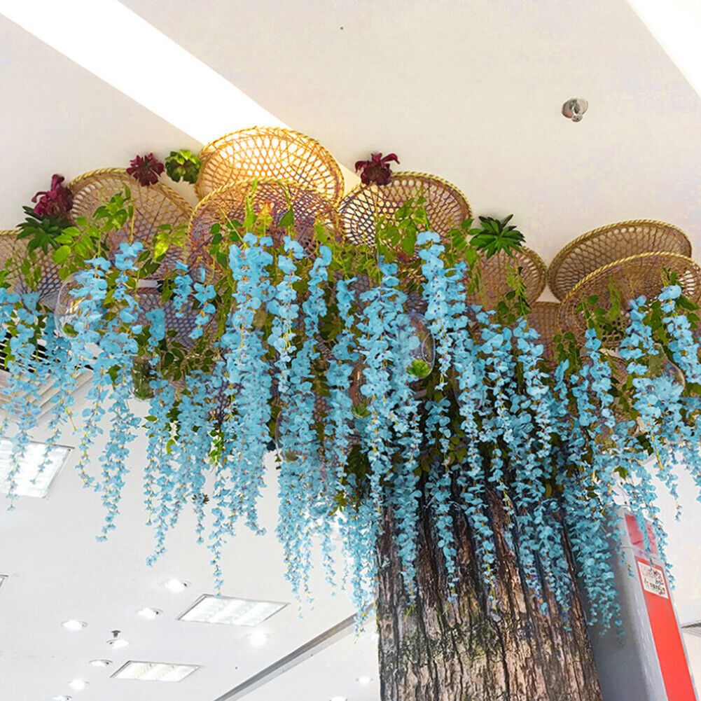 12x Artificial Fake Hanging Wisteria Silk Flowers Vine Plant Home Garden Decor