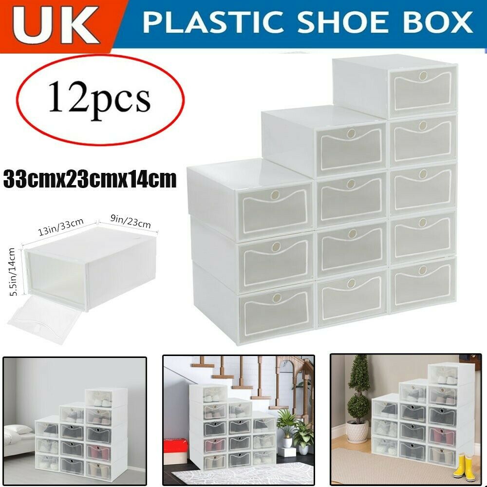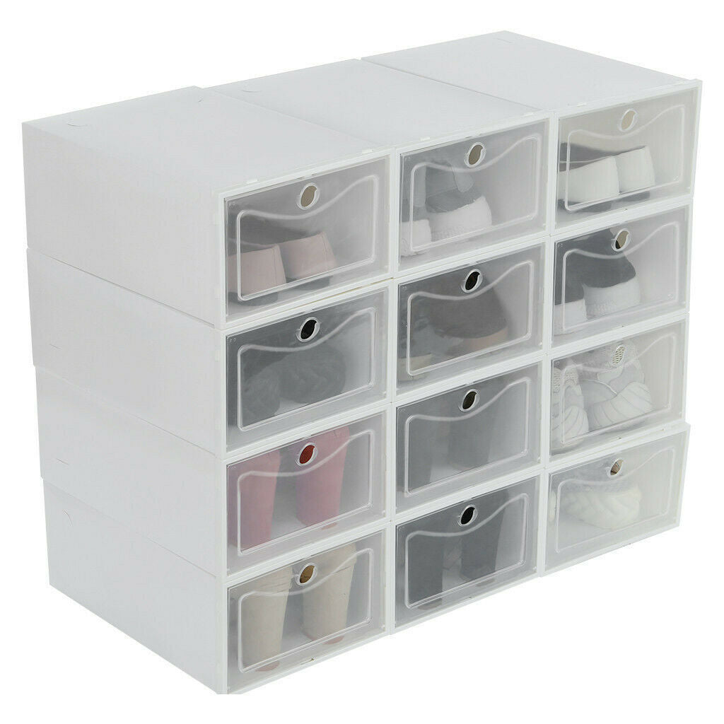 12X Clear Plastic Shoe Storage Boxes Drawer Stackable Foldable Durable Organiser