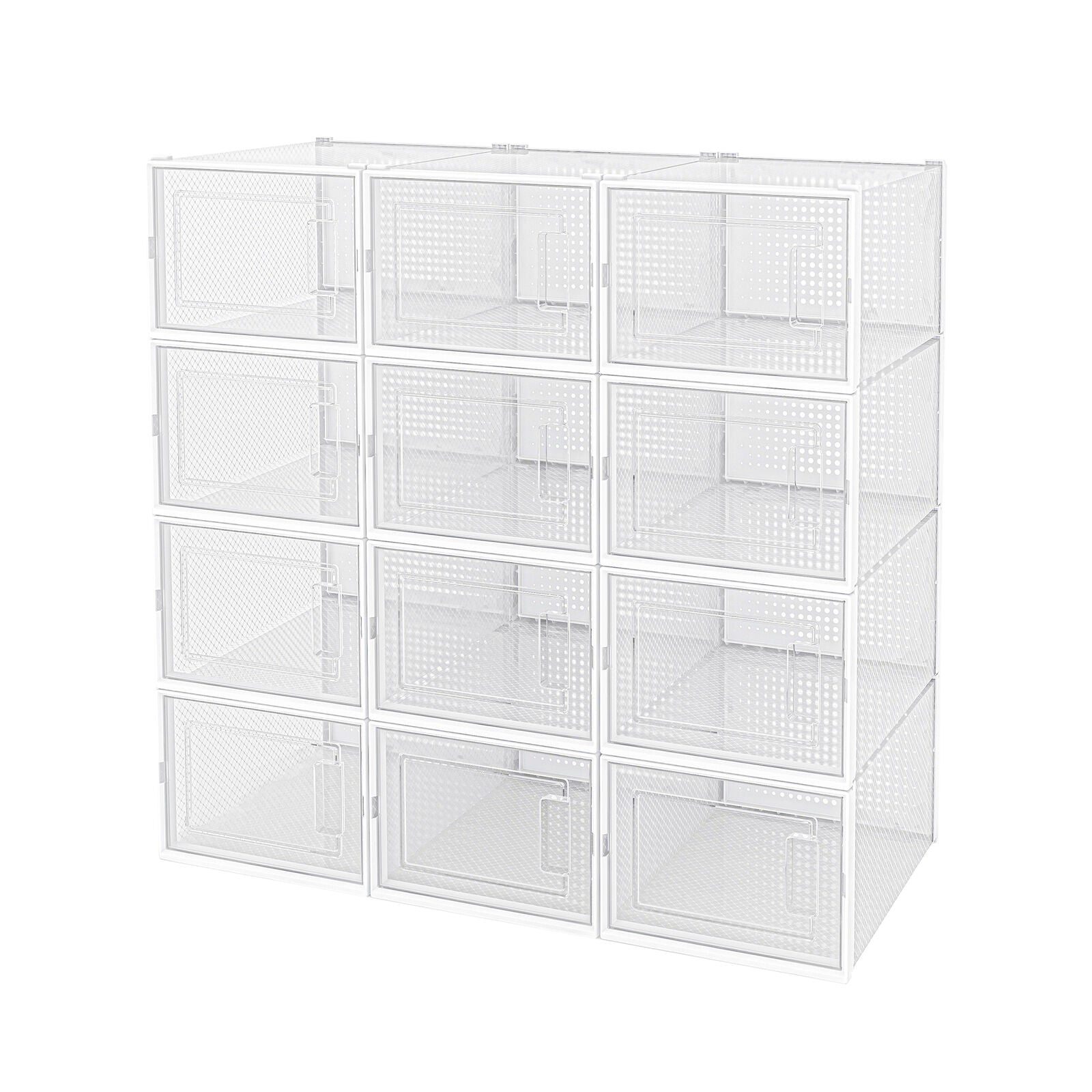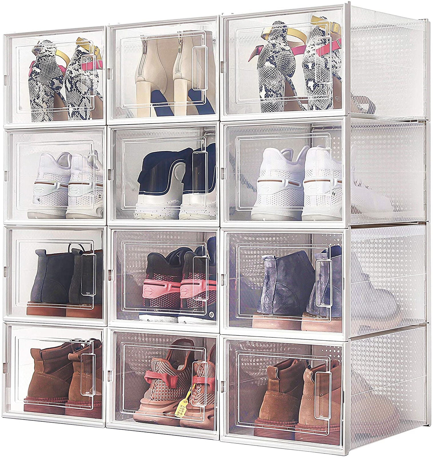 12x Clear Strong Plastic Shoe Storage Boxes Drawer Stackable Foldable Organizer