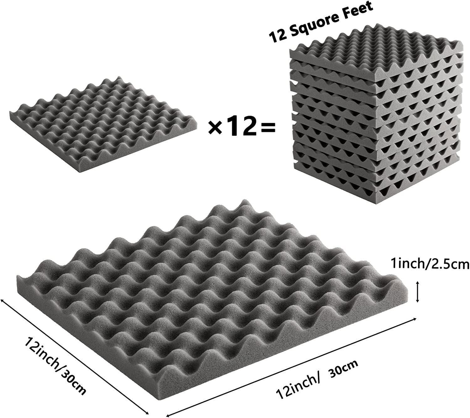 12x12x2" Acoustic Wall Panels Tiles Studio Egg Crate Soundproofing Foam Pads