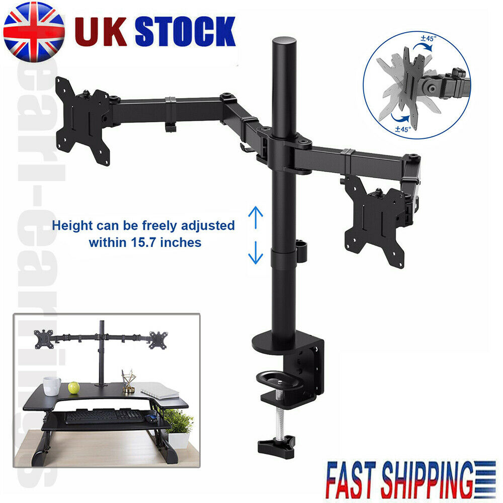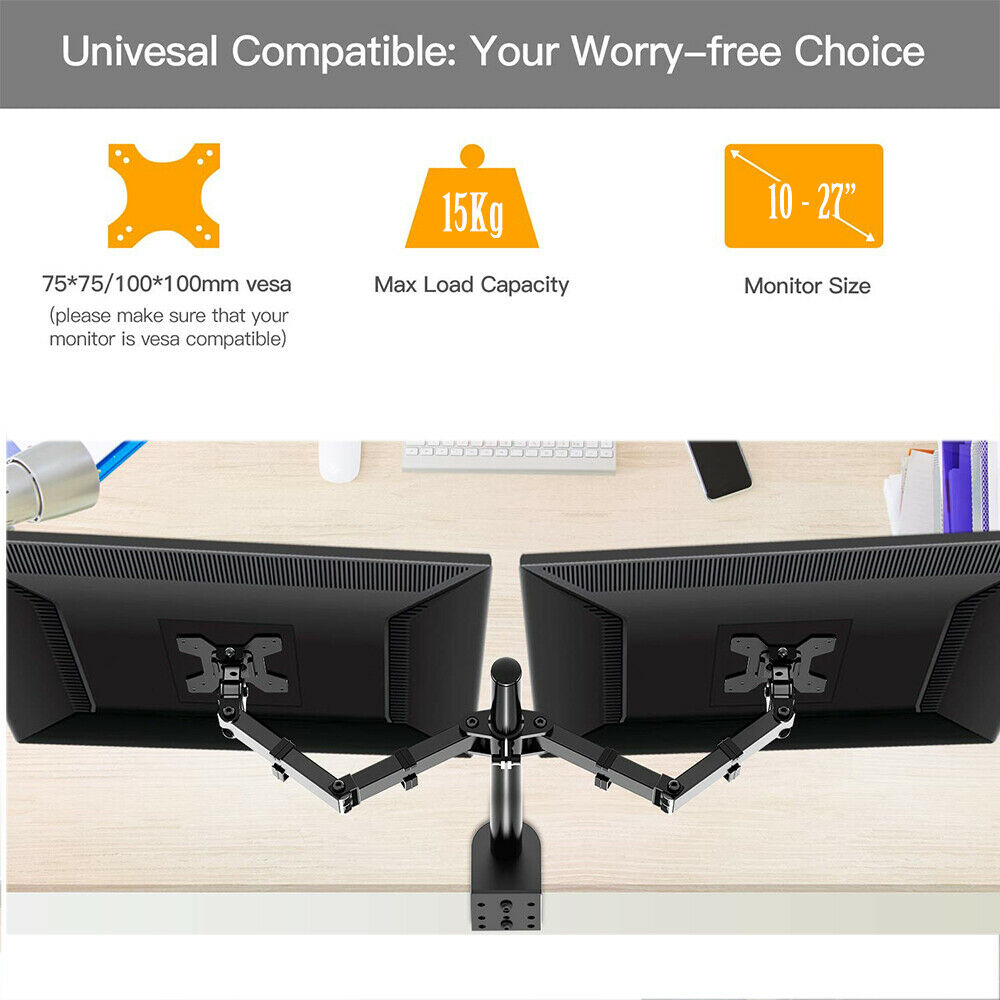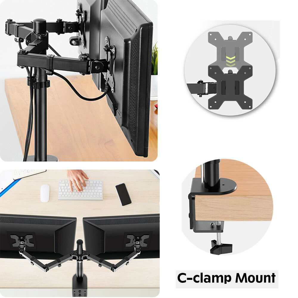 13"- 27" Double Dual Display Computer Screen Monitor Arm Mount Desk Stand LED CC
