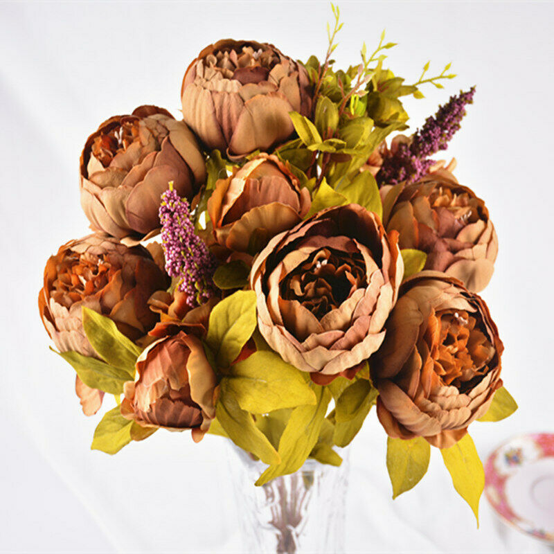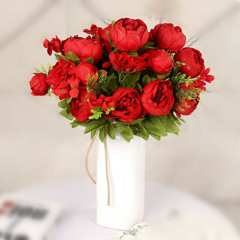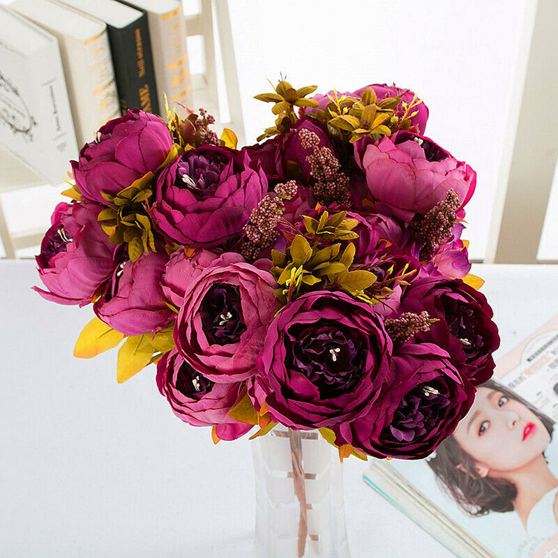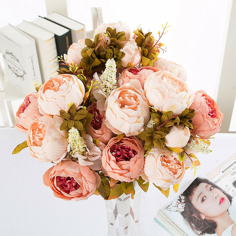 13 Heads Silk Peony Artificial Flowers Peony Wedding Bouquet Home Party Decor