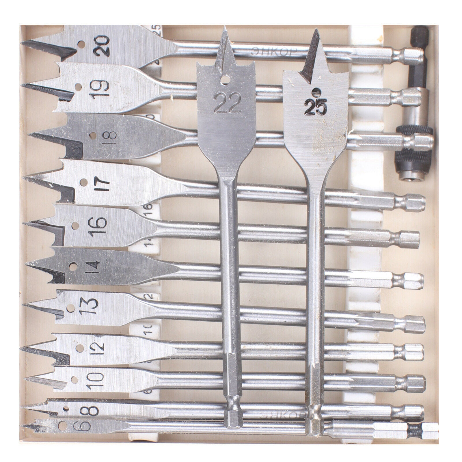 13 Pc Wood Drill Bit Set Spade Flat Hex Shank Bits 150mm Length 6-25mm Woodworks