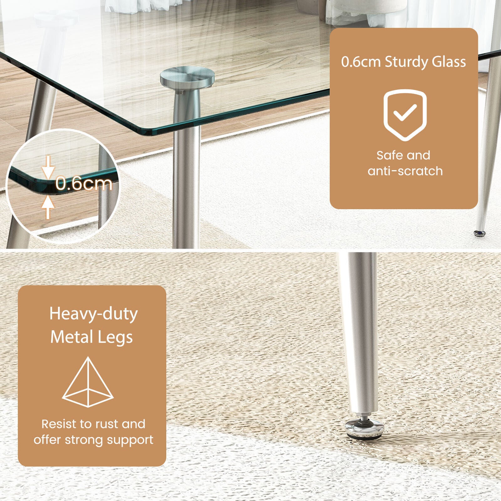 130 x 70cm Modern Glass Dining Table Kitchen Elegant Rectangular Table